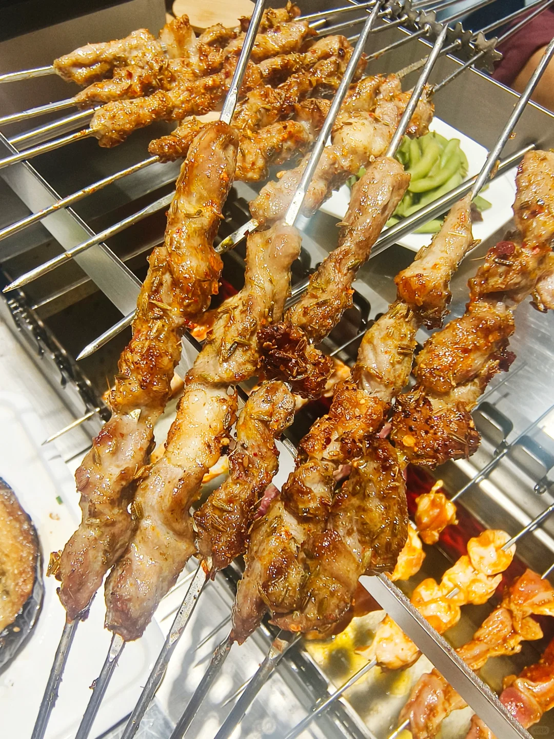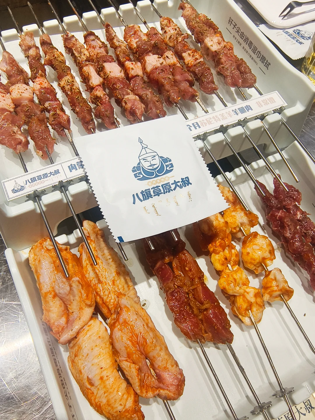 😋羊肉串更是厉害,来自锡林郭勒大草原 5 - 6 个月的苏尼特草原羔羊肉,嫩得不得了!他们那里的小羊专吃沙葱和韭菜花,所以肉质超级鲜嫩,这可是内蒙古当地人都公认最好的羊肉。