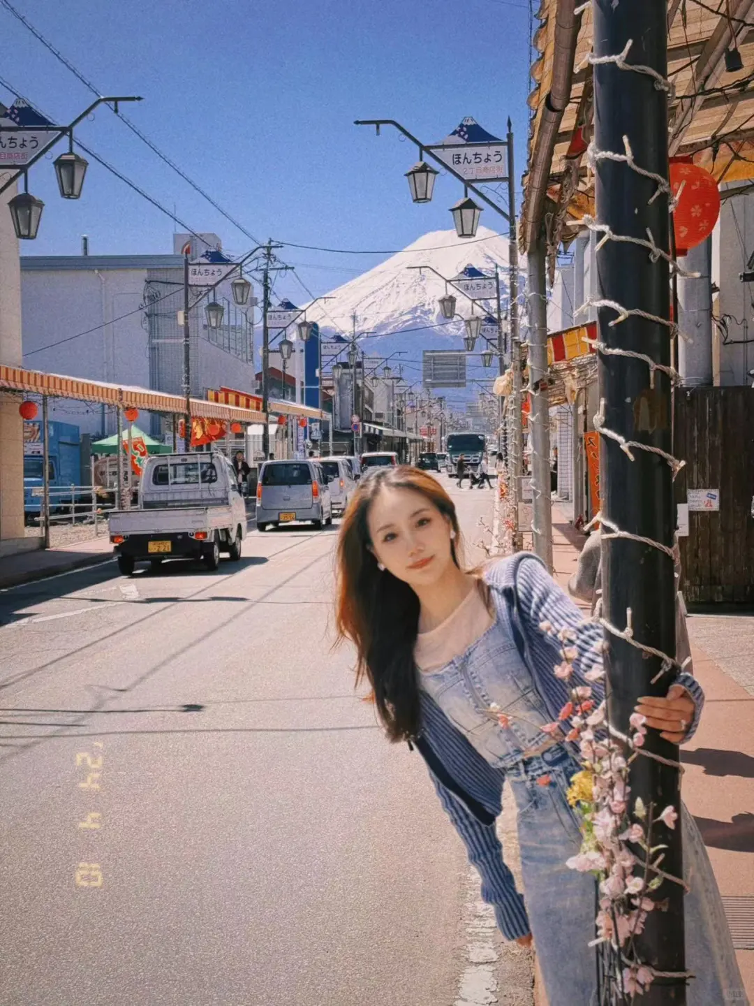 笔直街道看似直通富士山,两边的小店也很有日剧感