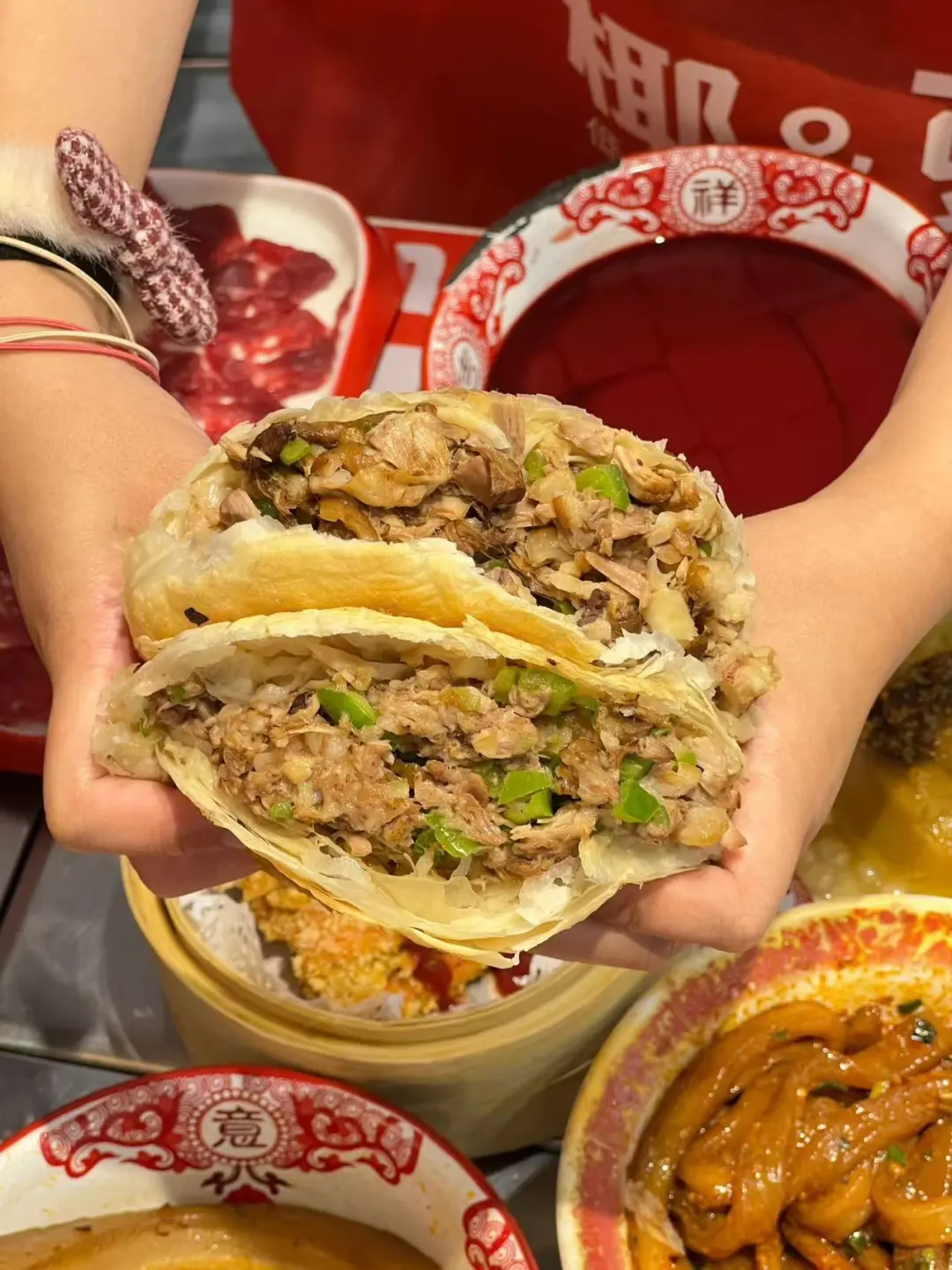 麻辣手擀粉口感爽滑,麻辣过瘾搭配把子肉,着实是一大亮点,香嫩多汁。🎉