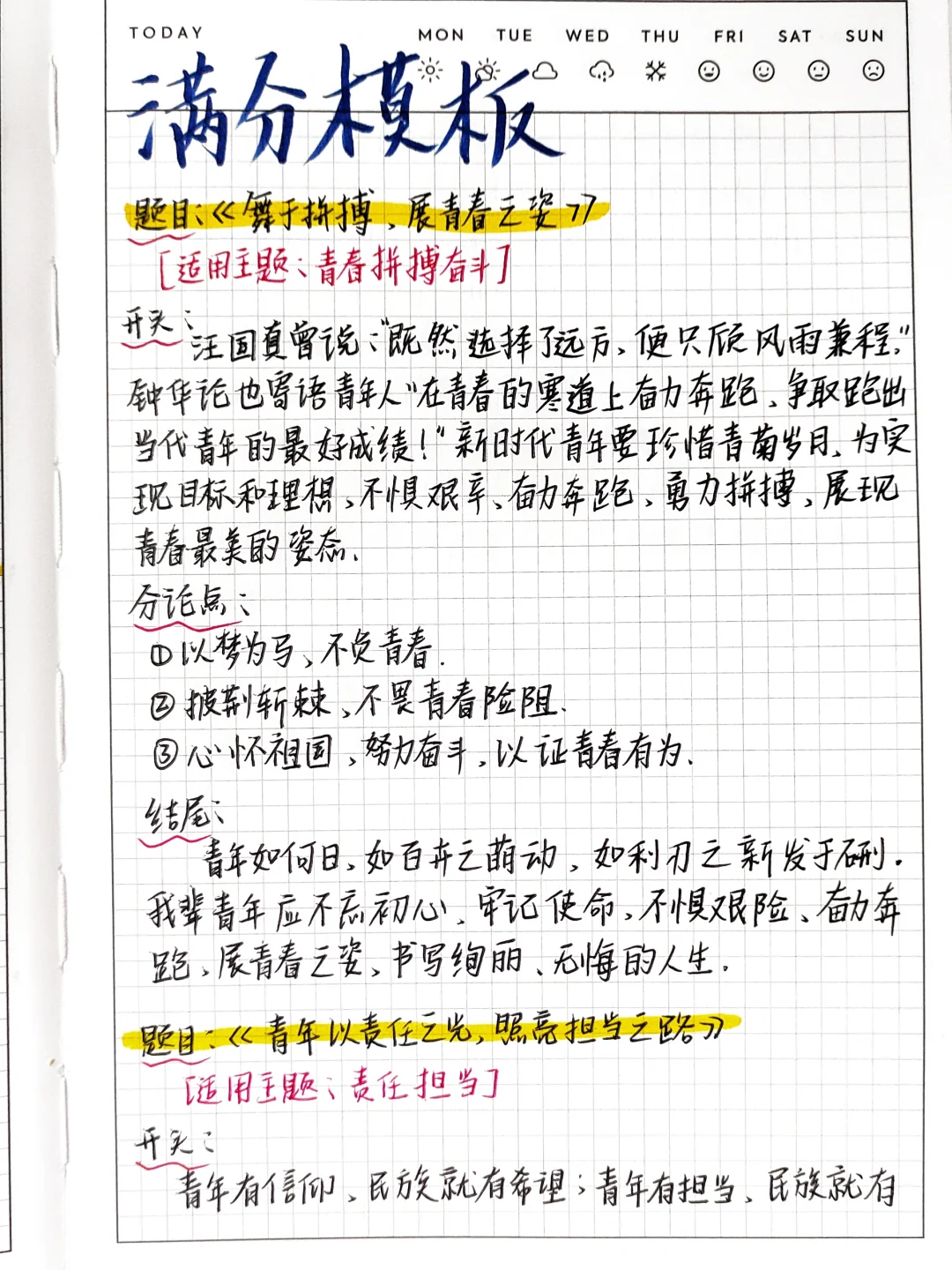 一期议论文满分模板来咯 准备笔和纸来摘抄啦