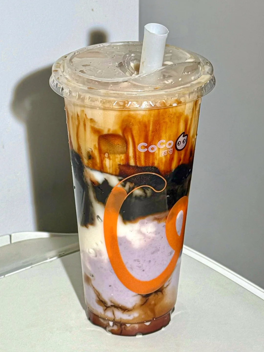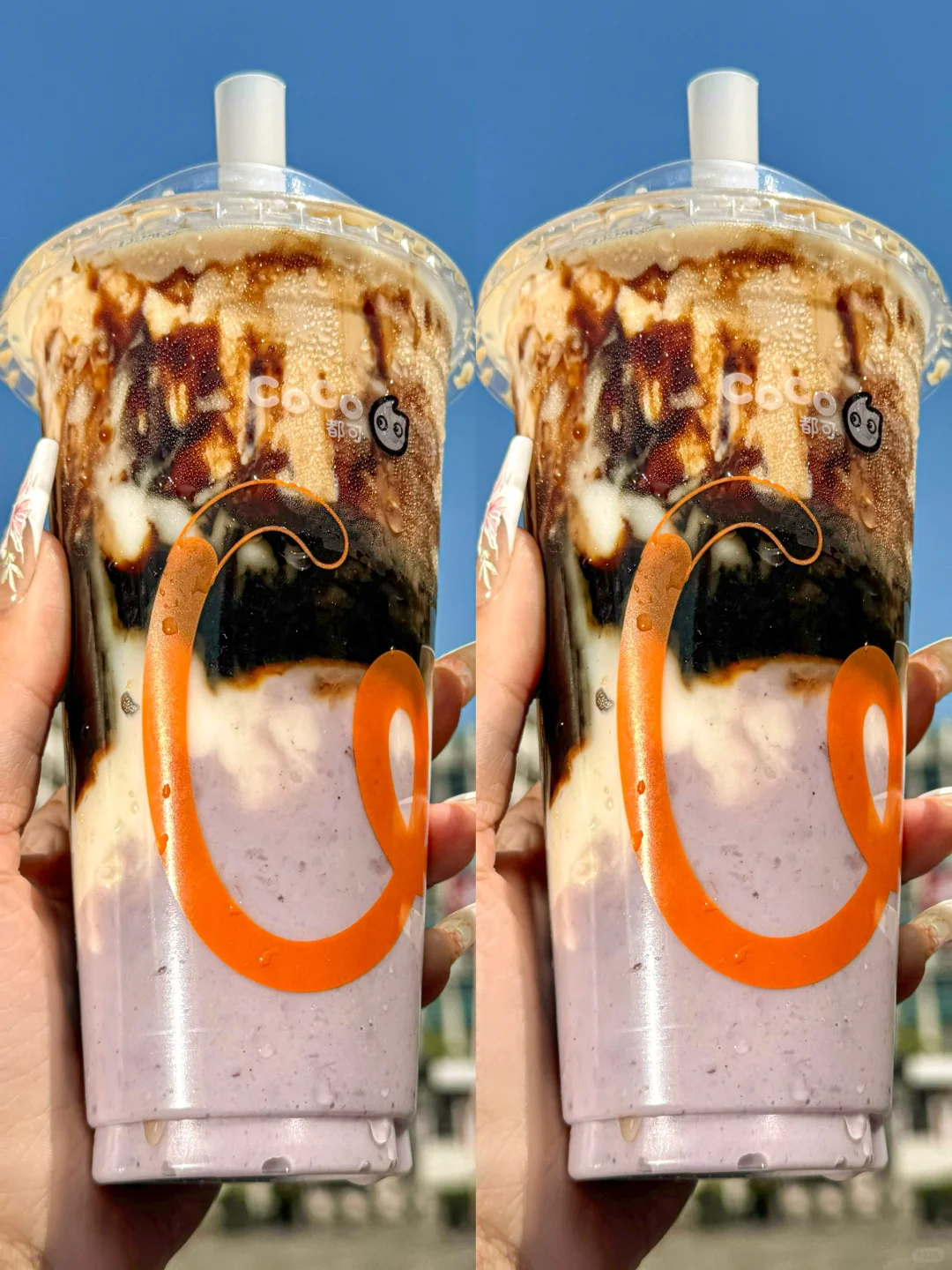 1️⃣瀑布黑糖珍珠牛乳茶➕芋泥➕麻薯➕正常冰