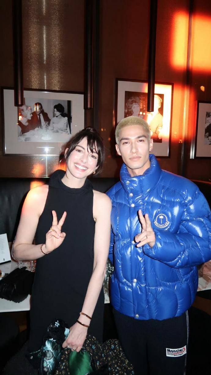 #安妮海瑟薇米卡同框合照# 米卡和安妮海瑟薇同框,超吸睛。辉煌背景增神秘,豪门姐弟感十足,令人赞叹不已。