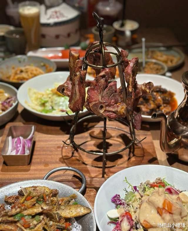 美食推荐:丝路古法烤雪花牛肋排,阿勒泰羊喝冰川水长大,肉质绝了!肋排烤得外焦里嫩,轻轻一抿就脱骨,蘸上酸黄瓜解腻,再撒点辣椒面,肉香直冲天灵盖。