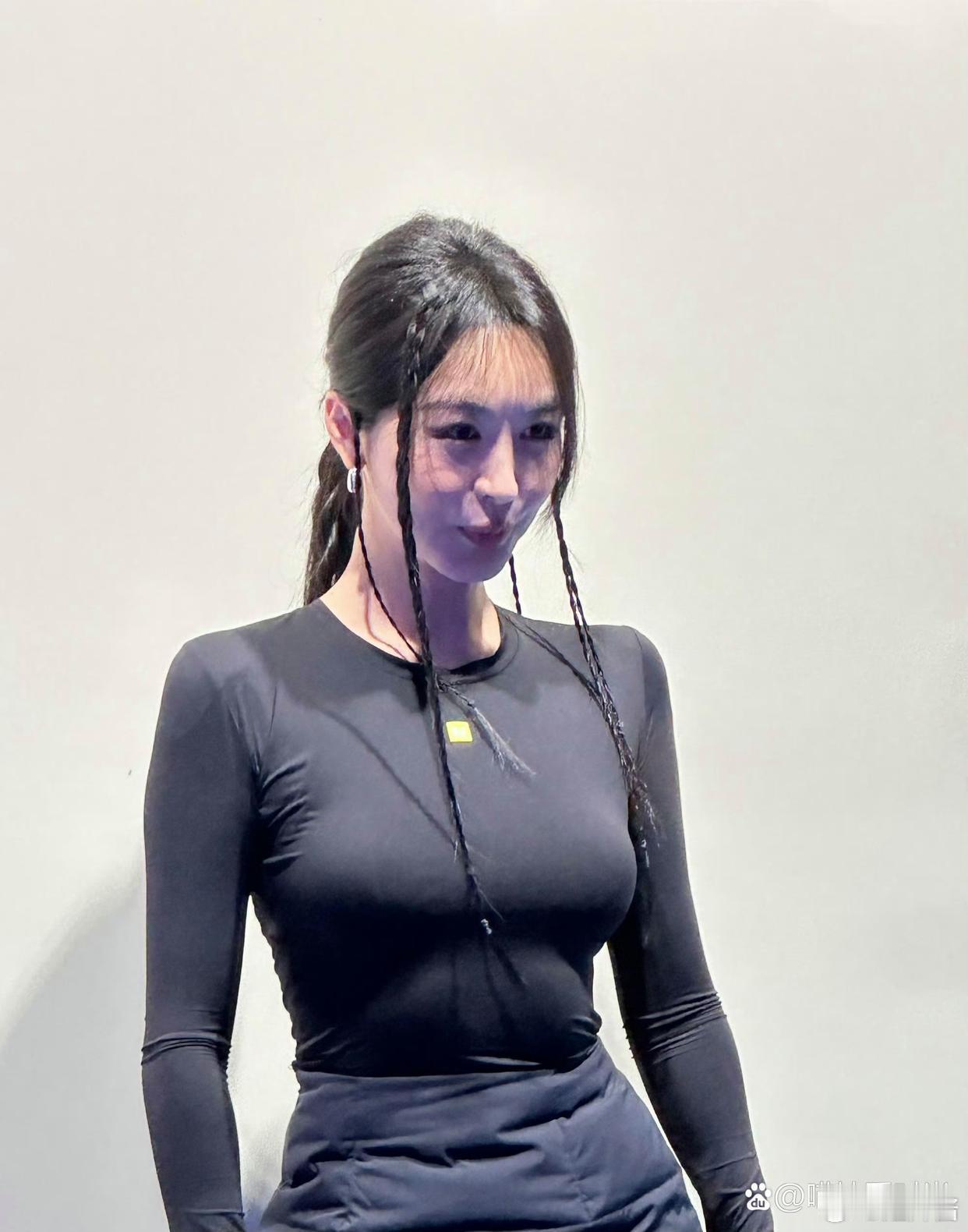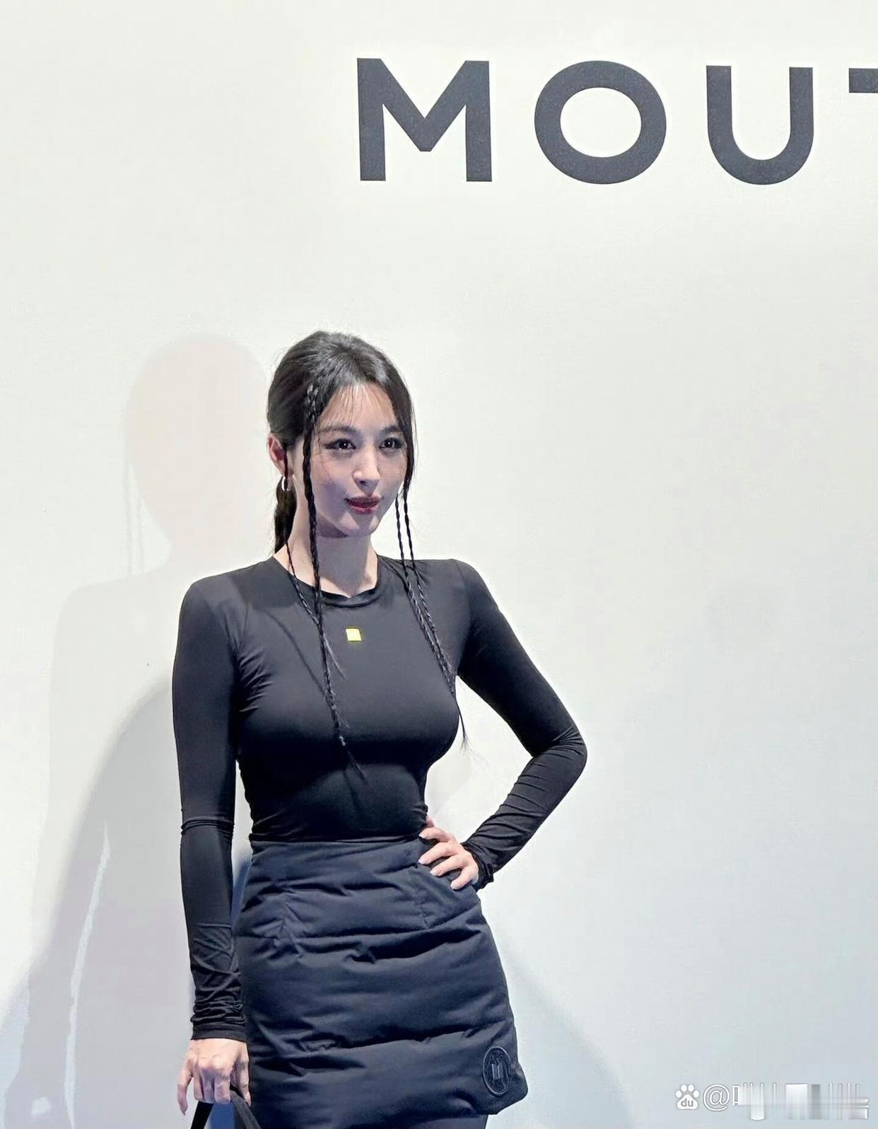 李菲儿穿秋衣参加活动,对自己身材好自信,事业线确实傲人,秋衣太显肚子了。