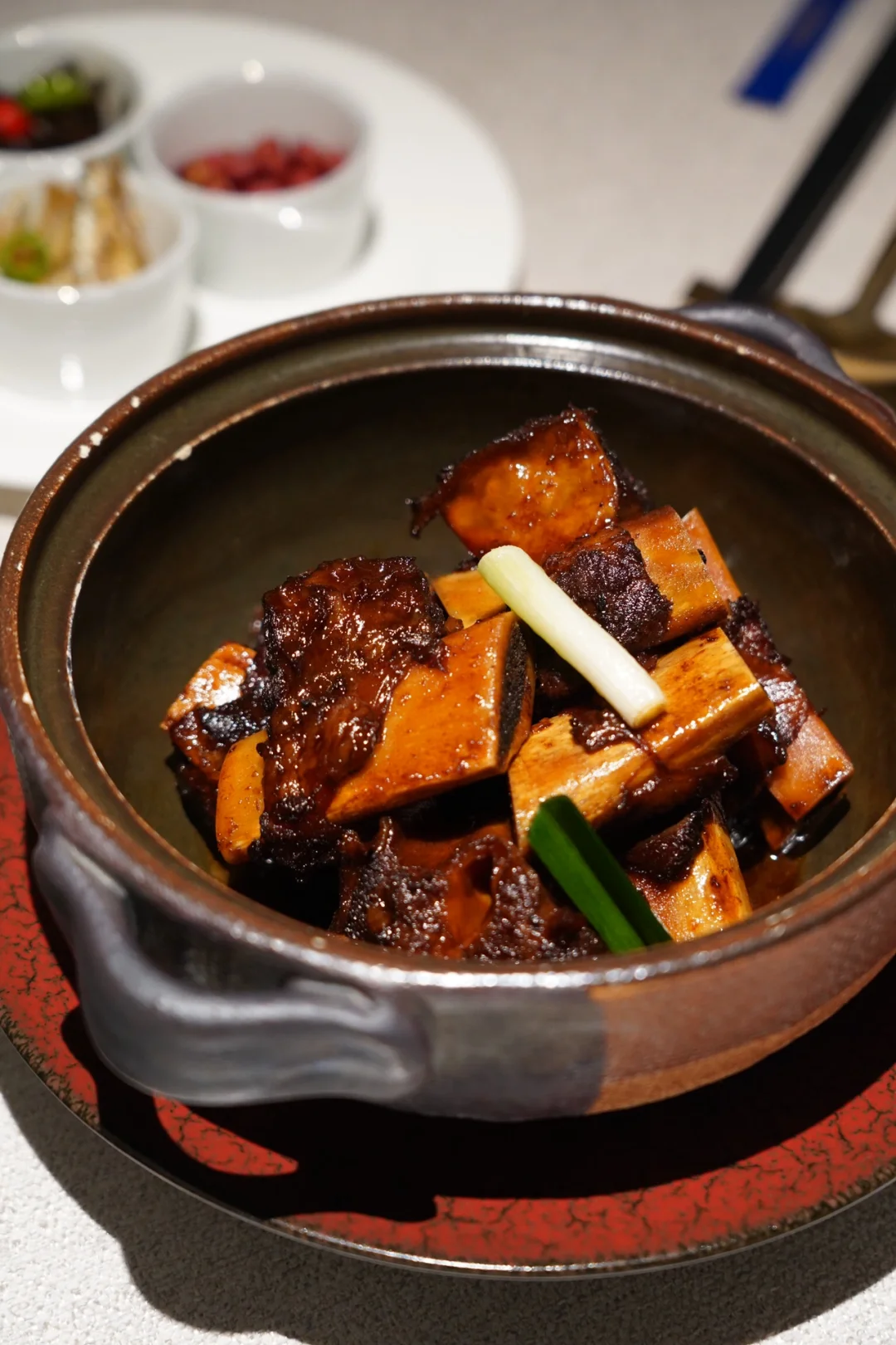 牛肋骨切成炖,在砂锅中焖制后上桌,保留了牛肉本身的汁水和鲜美。吃起来很易脱骨,牛肉香嫩,调味的咸淡度也刚刚好,嚼在口中肉香四溢…