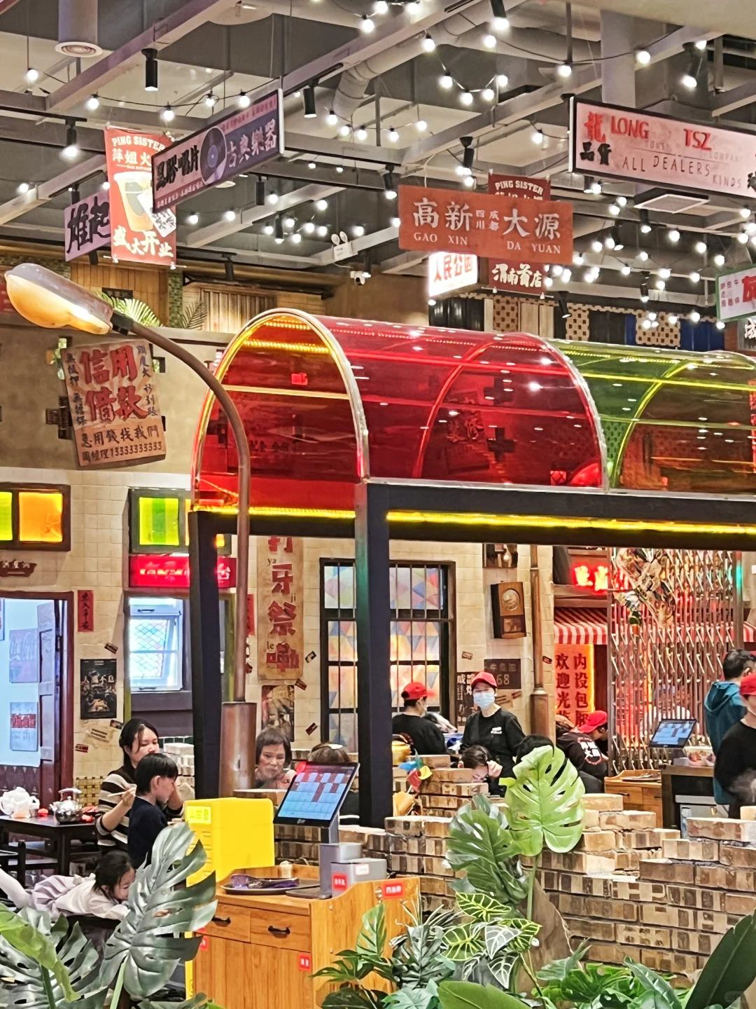 店内的装饰、灯光等细节都营造出了浓郁的市井氛围,就跟到了重庆老街一样。