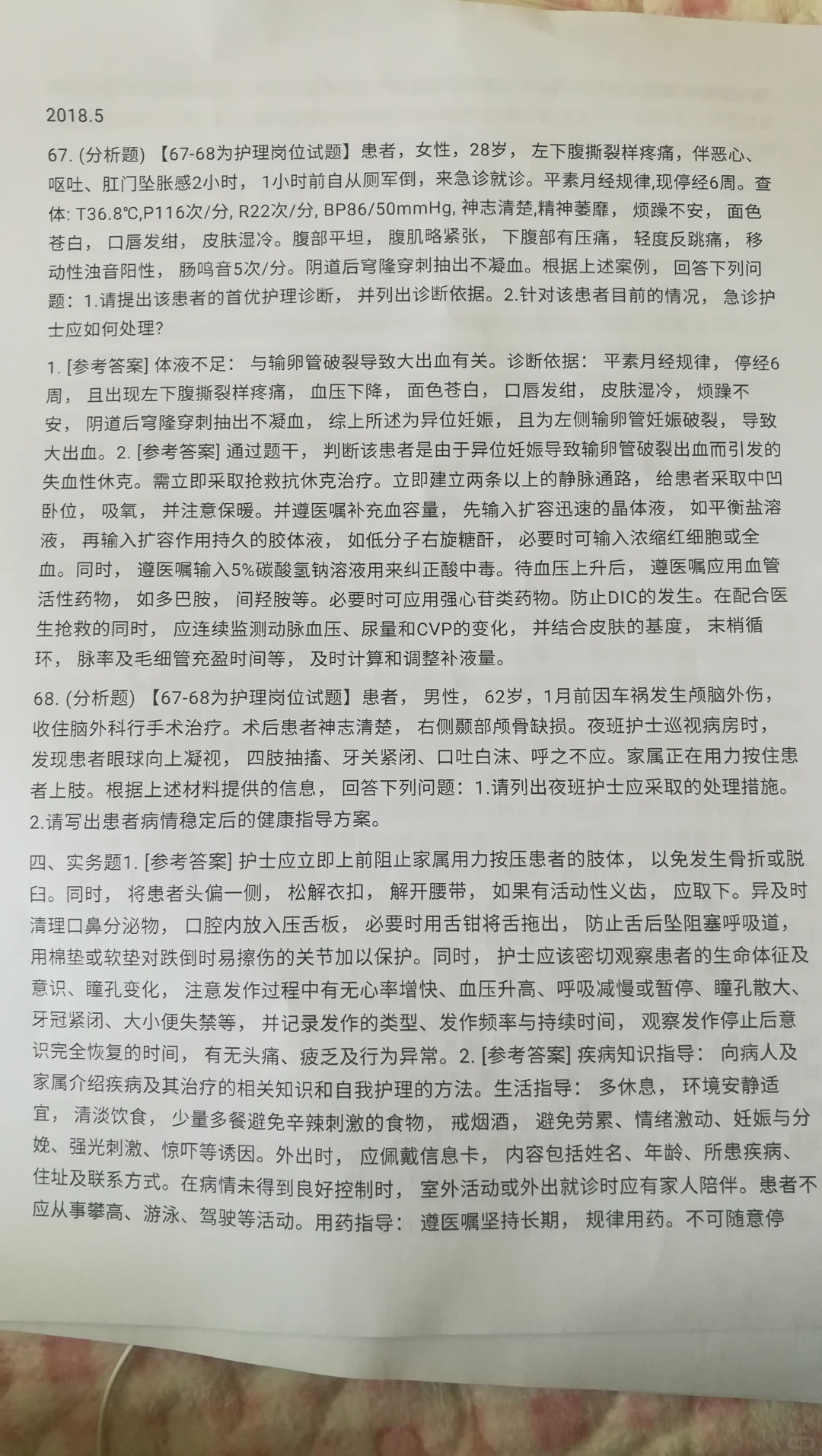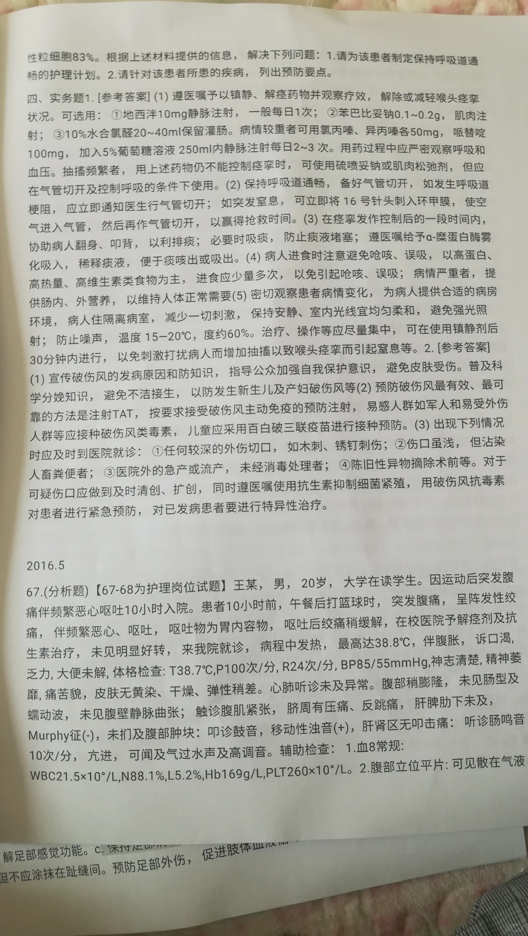 护理事业编 综合应用能力e类真题 沈阳医疗事业编
