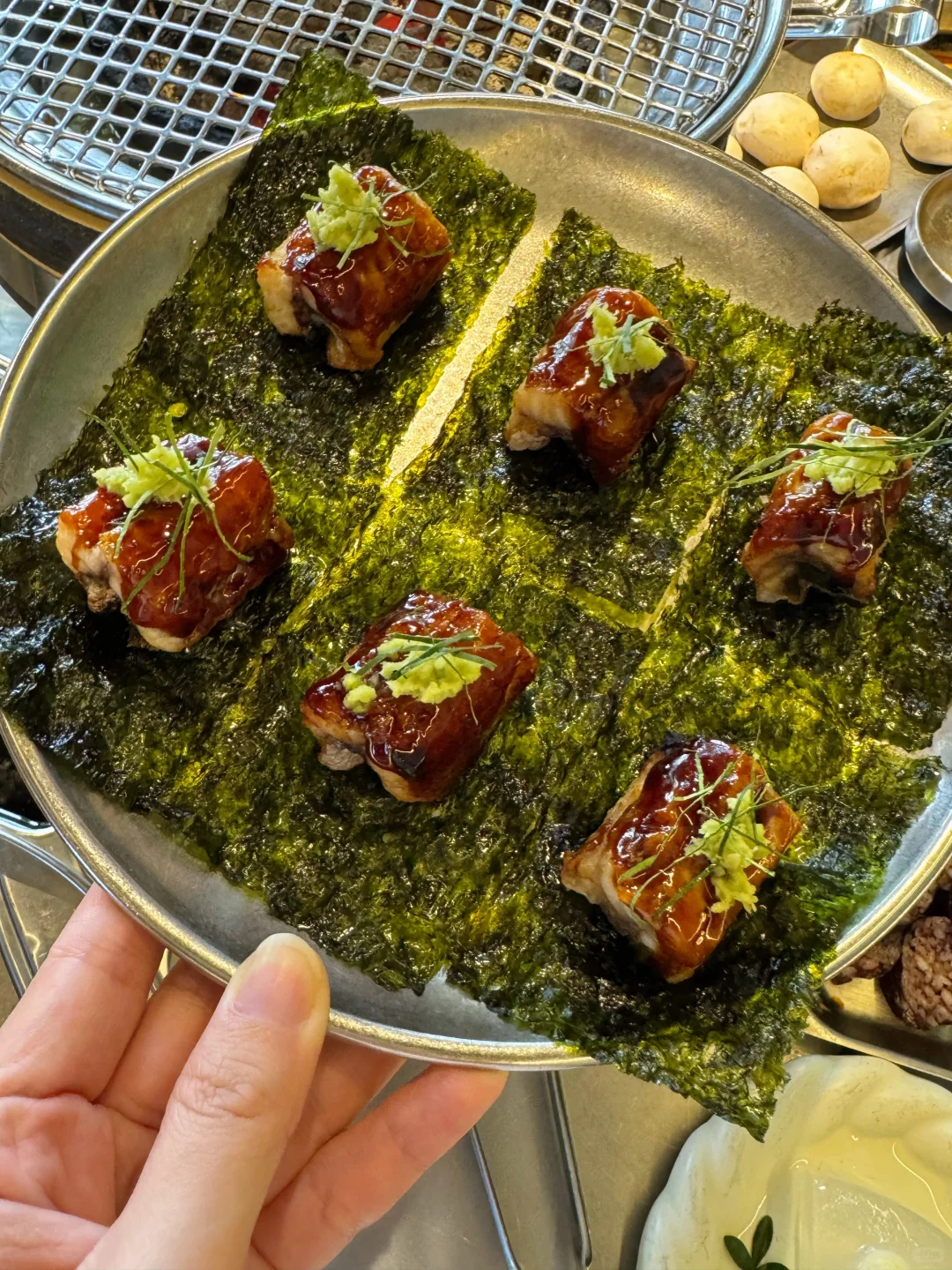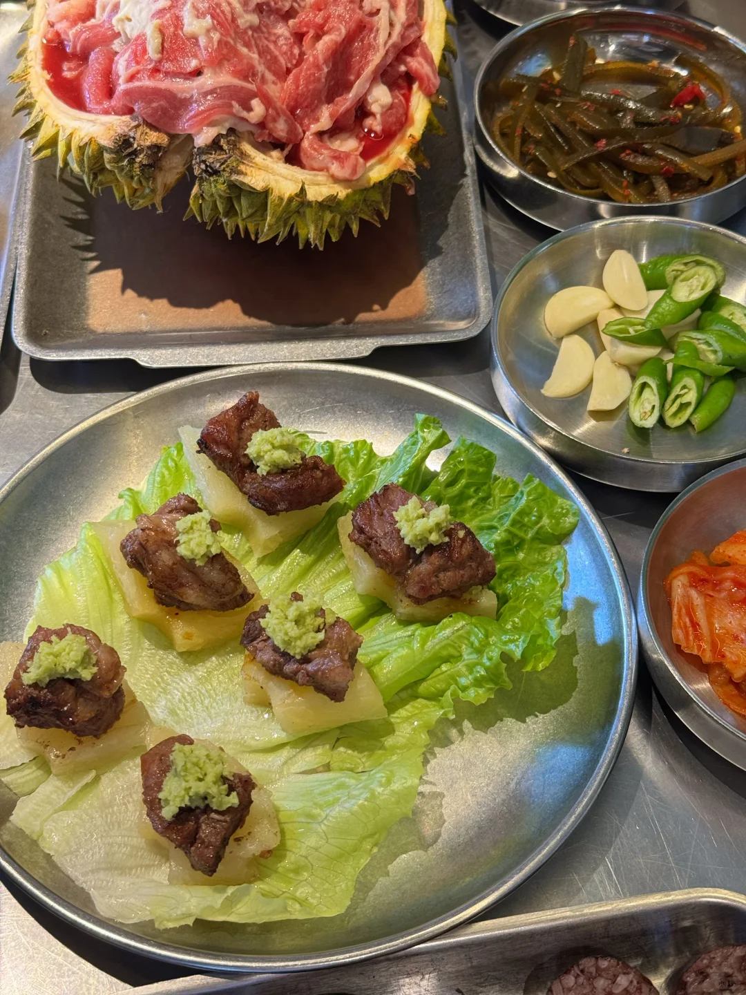 ✔️生菜包肉➕配菜 ✔️葱叶包肉 ✔️菠萝➕山葵➕肉