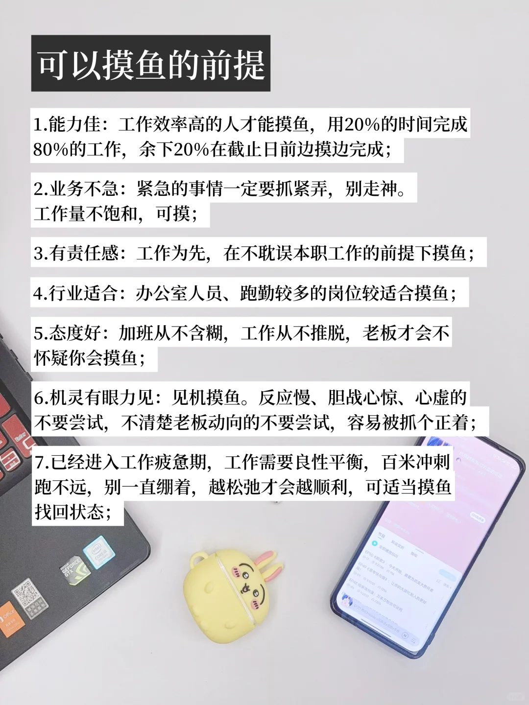 摸鱼,某种程度上是为了更好地工作。摸鱼并不代表懈怠,相反,它是一种有效的放松和休息方式。适当的摸鱼,我们能更好地调整状态,迎接新的挑战。