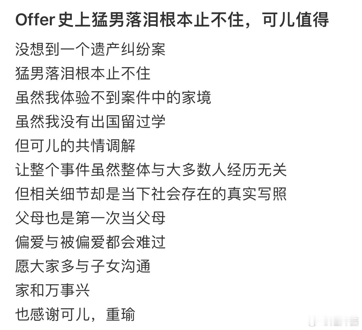 #offer6陈可儿共情力# 《令人心动的offer6》让我们看到了陈可儿共情力的非凡之处,她以细腻的情感洞察和真诚的沟通态度,赢得了遗产纠纷双方的信任与尊重。