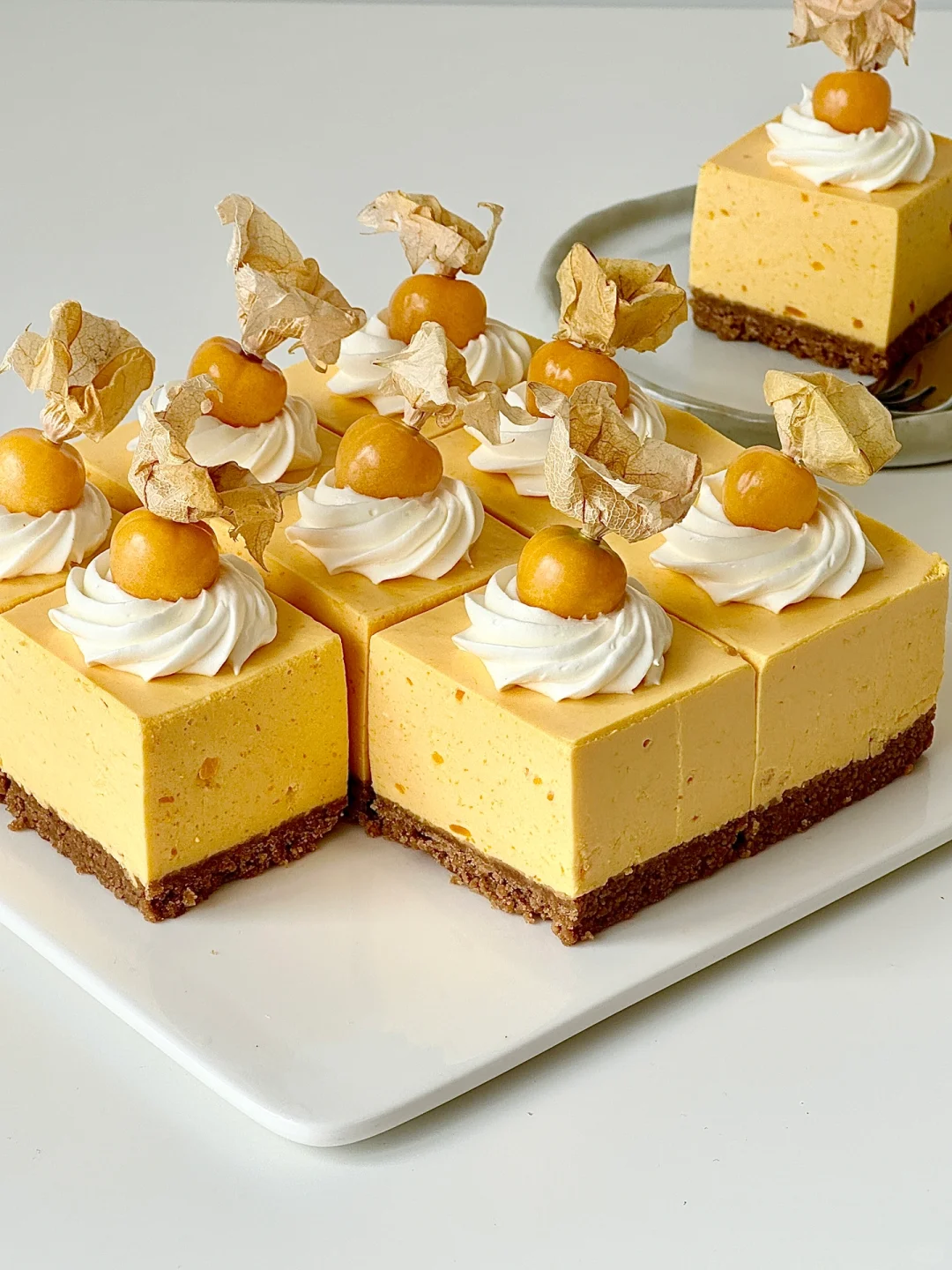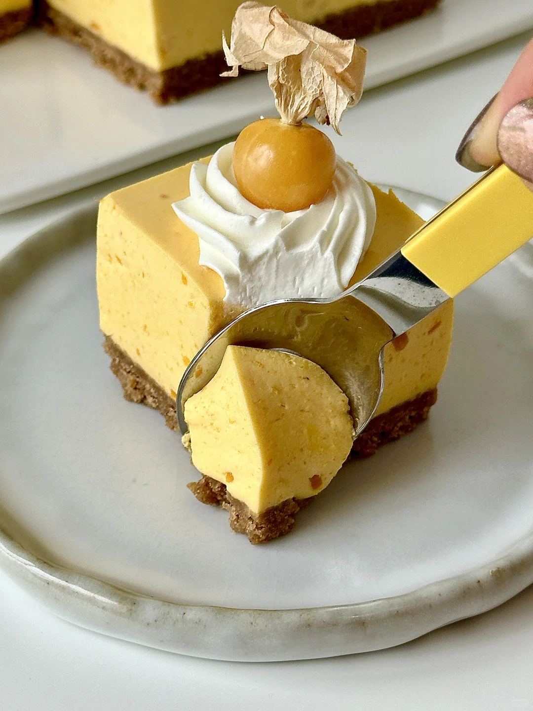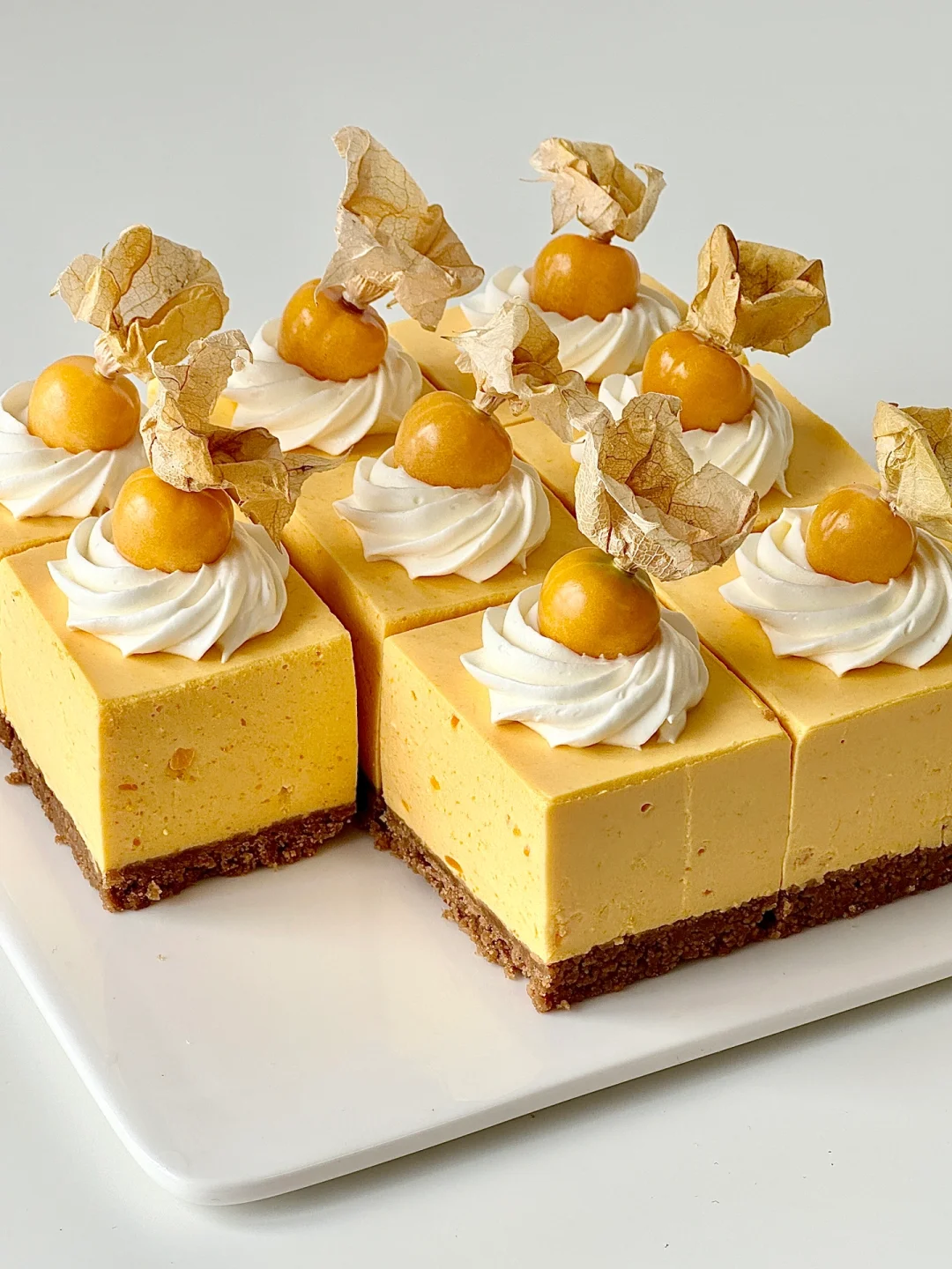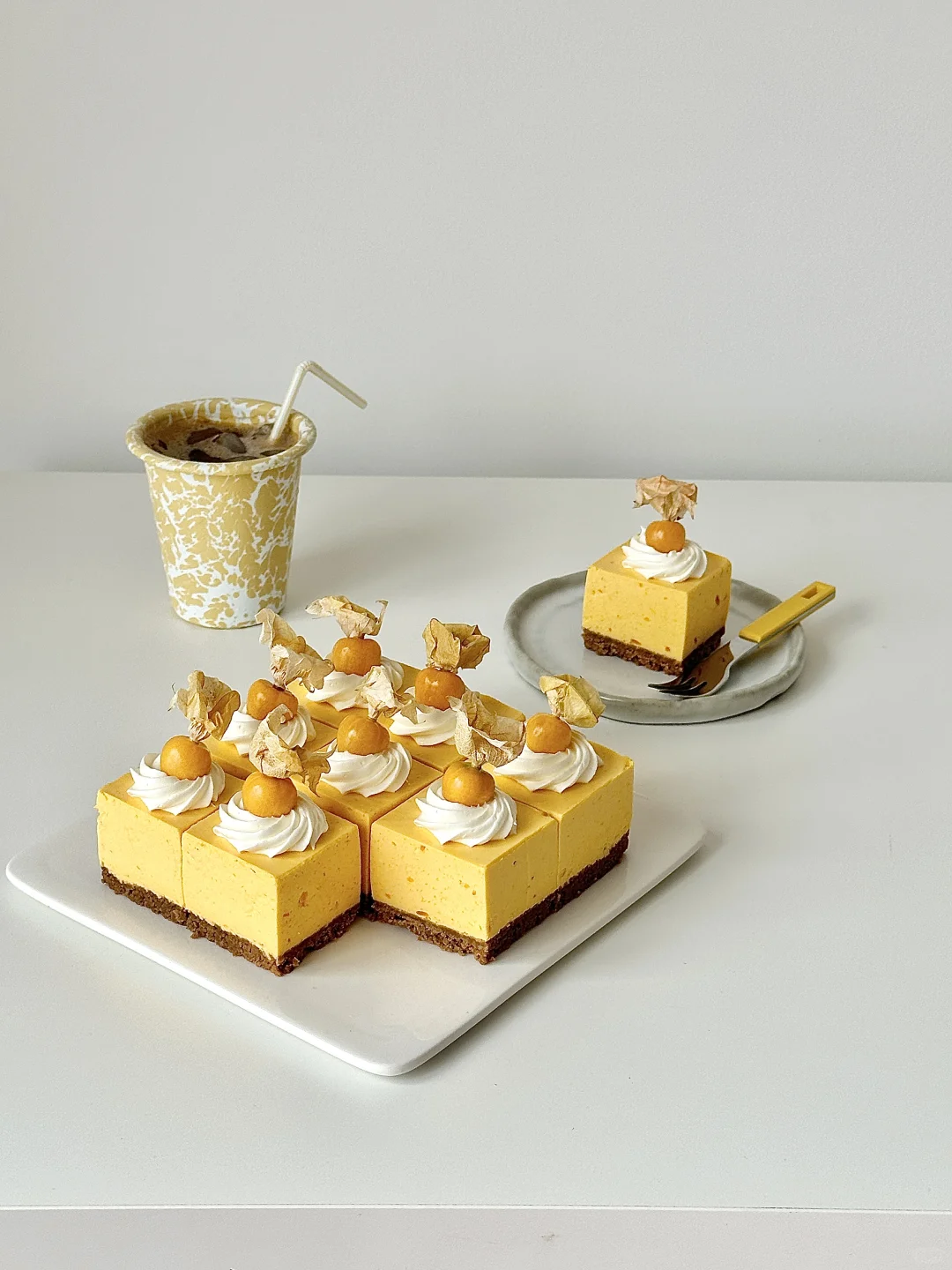 ⑤ 脱模后切块,挤上奶油花放洋姑娘装饰即可☑️