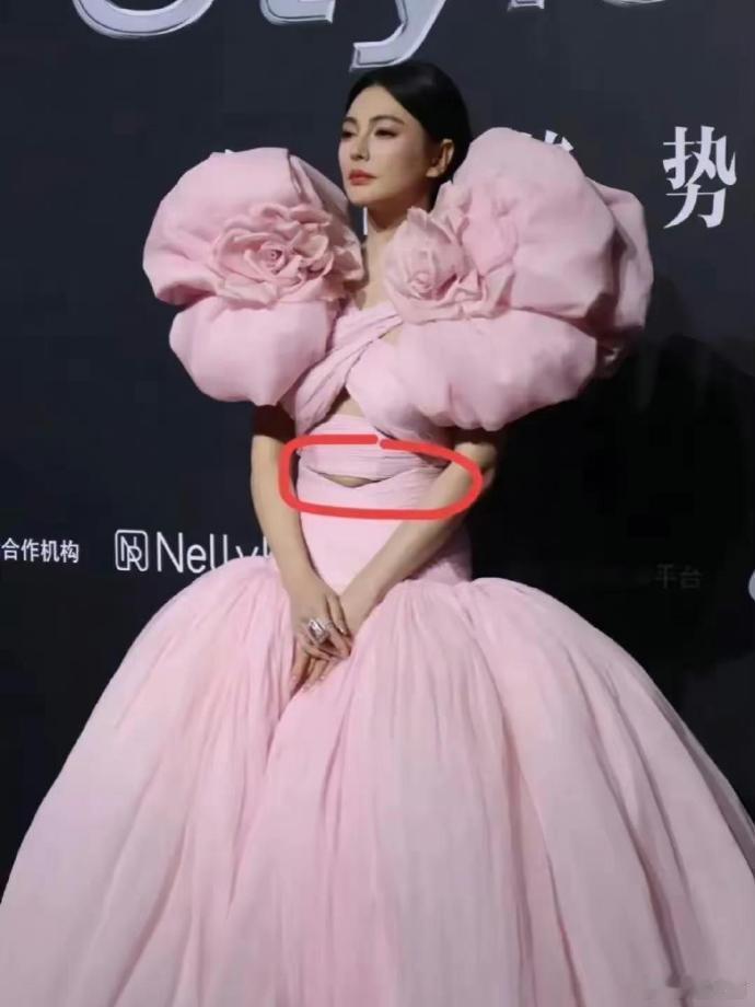 张雨绮身材那么丰满就不要挑战紧身礼服了,穿不下硬塞,这下尴尬的事情发生了。