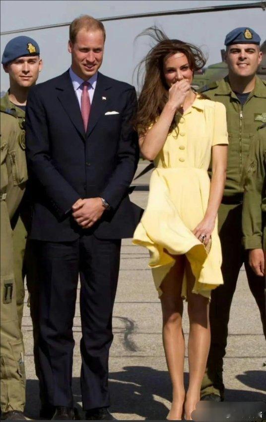 凯特王妃,在某次访问活动中,意外地遭遇了一阵风,风将她那黄色连身裙轻轻吹起。就在这一瞬间,整个英国都为之轰动,部分媒体甚至不由自主地将此场景与玛丽莲·梦露那经典的“裙摆飞扬”照片相提并论。