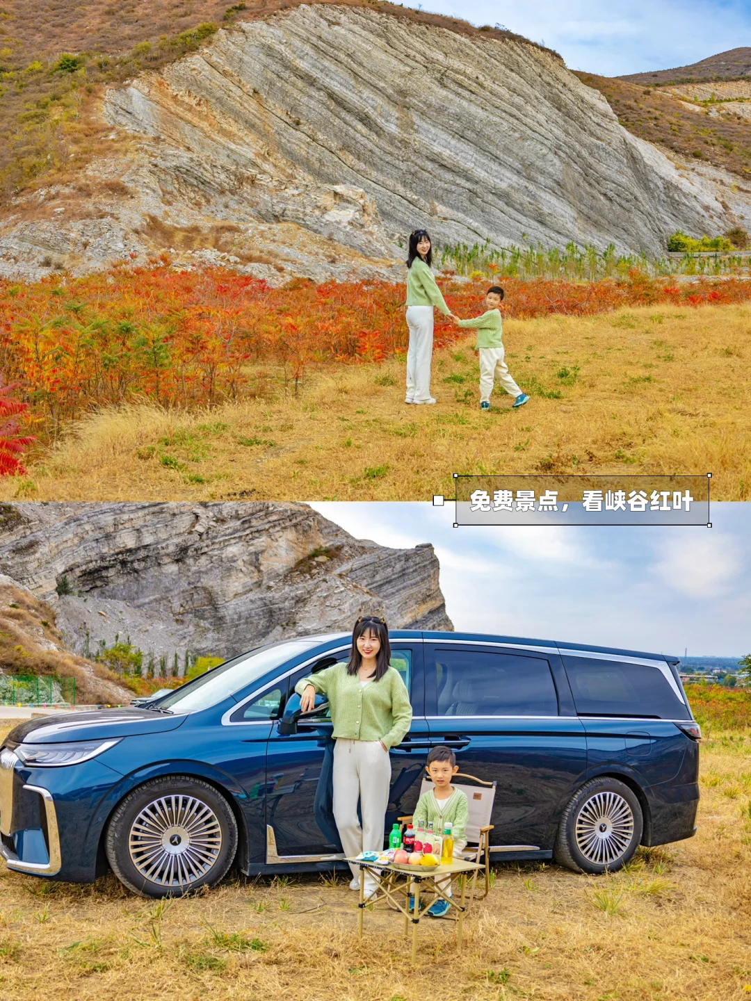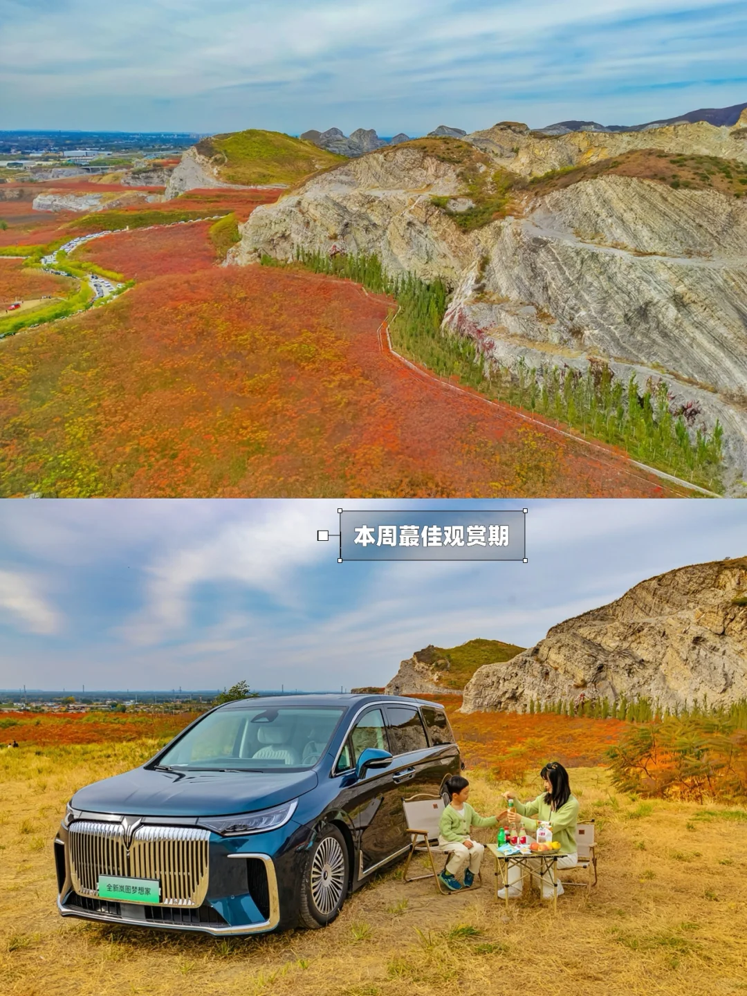 ʜ̆̈ᴇ̆̈ʟ̆̈ʟ̆̈ᴏ̆̈大家好🎀 这里是爱户外、爱遛娃的杨小兔儿🐰 . 一夜入秋🍂北京周边迎来了醉美的红叶季‼️ 小兔儿又来给大家分享自驾赏秋的好地方啦🥰 看满山红叶🍁还有震撼峡谷⛰️ 能免费露营⛺️还有当地市集🪅 本周是蕞佳观赏期‼️错过等一年‼️ . 🌟推荐理由🌟 🔹距离近🔹北京出发1h即达,全程高速 🔹不要钱🔹门票免费、露营免费、停车免费 🔹难度低🔹不需爬山,直接开到山顶赏红叶,老幼皆宜 🔹可露营🔹峡谷区域可开车到山脚下,露营自由 🔹能骑马🔹山谷内可骑马、骑骆驼,30/次 🔹有市集🔹周末有当地市集,供应土特产 . 🧭导航“蒋福山红叶谷营地”,到了导航点一直往前开100-200米,就可看到道路两旁的红叶,路边随时可停车。再往前就能看到峡谷露营地,随时可以下道或开上山顶俯瞰红叶。全程指示牌清晰 . 🚗 这次出行,有新的家庭成员——全新岚图梦想家陪伴 🔸车辆外观很大气,鲲鹏展翅大灯和扶摇直上格栅,妥妥的商务豪华感。空间很大,车身长超过5米3,小朋友可以在车内行走!三排七座,座座皆宽敞!超大空间可同时满足7人舒适乘坐+8个20寸行李箱,简直是户外人的绝好搭子 🔸乘坐也很舒适,二排零重力座椅,开启后让身体与座椅最大化贴合,腰部无悬空,10点按摩缓解了长途旅行的劳累 🔸车内具有强大的娱乐设施,二排17.3英寸3K娱乐屏可调角度,支持办公/影音/游戏无损投屏,最大限度解决了自驾过程中的无聊,也让带小朋友出现的旅途更加轻松愉快 🔸内置13L冷暖可调双门冰箱,可以放长途旅行的食物和饮品,外放电源直接就可以连接小家电,烧烤、做饭、充电全部搞定 🥰全新岚图梦想家不仅给足了旅途中的安全感,也丰富了自驾路程中的亲子时光 . 祝大家玩儿的开心❤ . 我是杨小兔儿🐰 五代土生土长的北京大妞儿🎀 爱旅行、爱分享、擅长做实用攻略✏ 更多宝藏旅行好去处🌲欢迎去主页看看🏷 —