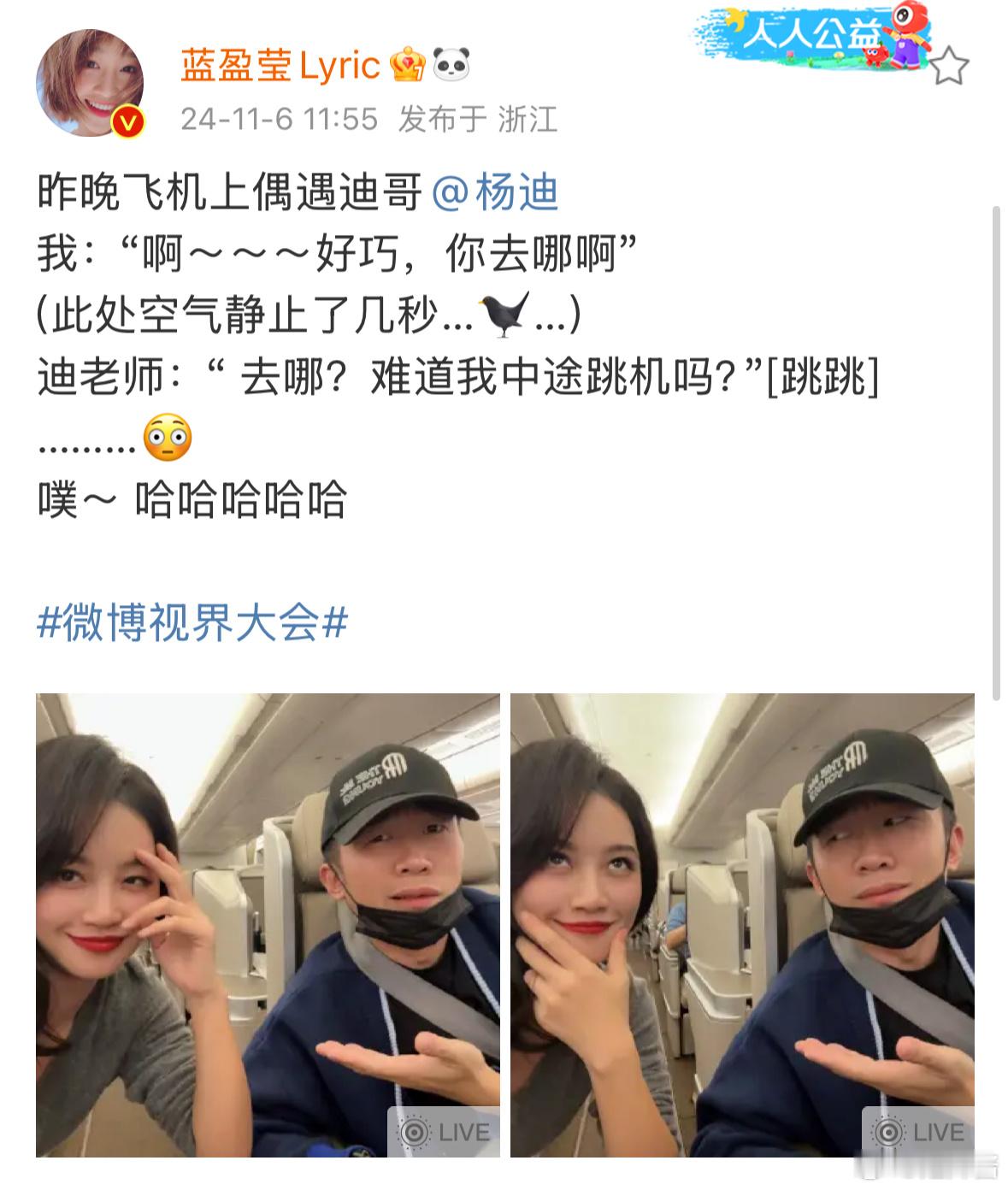 #蓝盈莹飞机上问杨迪去哪# 蓝盈莹和杨迪在飞机上的小插曲确实是够搞笑的!问杨迪