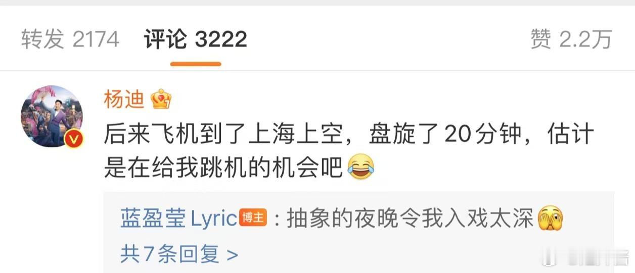 #蓝盈莹飞机上问杨迪去哪# 蓝盈莹和杨迪在飞机上的小插曲确实是够搞笑的!问杨迪去哪,杨迪也是一本正经的回复“难道我中途跳机吗”,过于搞笑#蓝盈莹坐飞机偶遇杨迪#