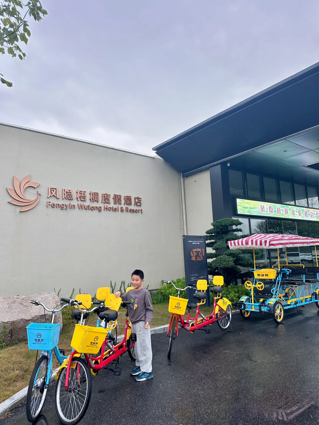 秋高气爽的天气太适合亲子骑行啦,凤凰岛运河绿道骑行,属实被惊到,扬州凤隐梧桐度假酒店的亲子自行车太好骑了!