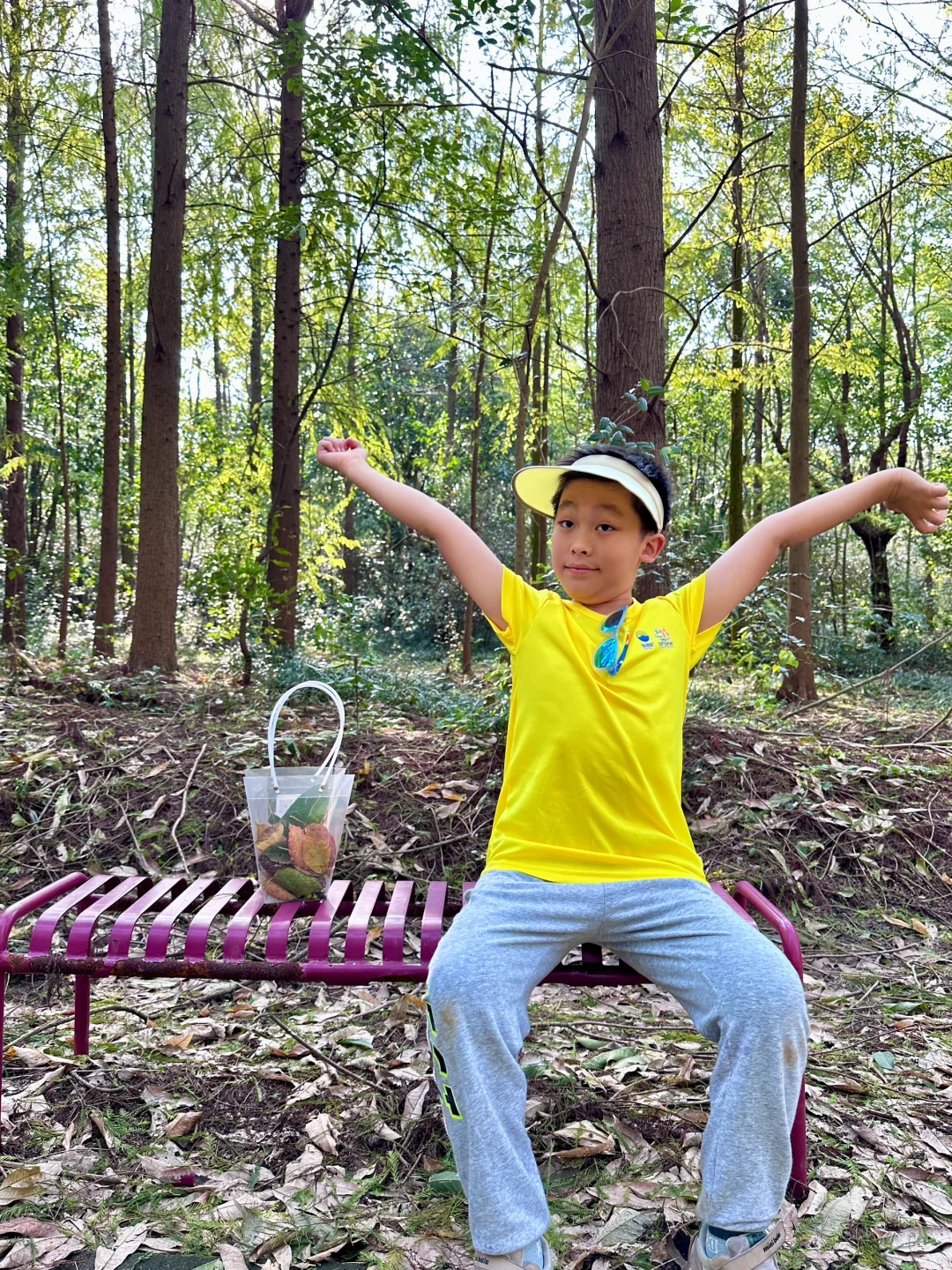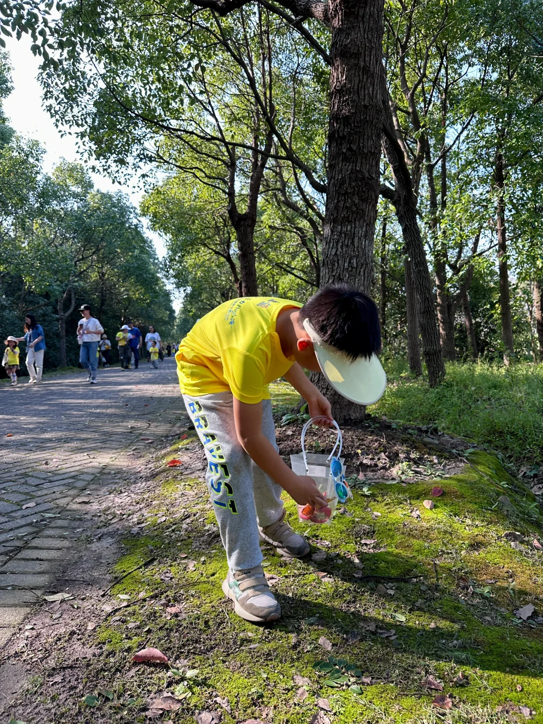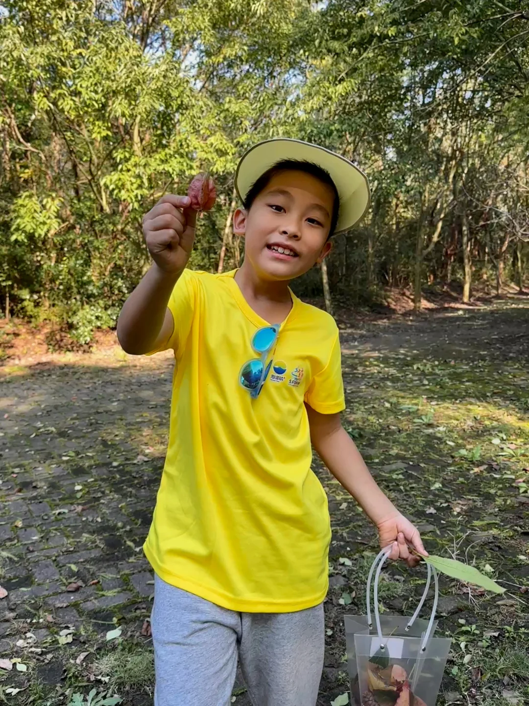 在没有天花板的地方,孩子们真的会很快乐,兴奋地跑来跑去,捡着各种形状的叶子,我俩还认识了新果实,一边捡叶子,一边聊着秋天的故事,探寻快乐秋天。