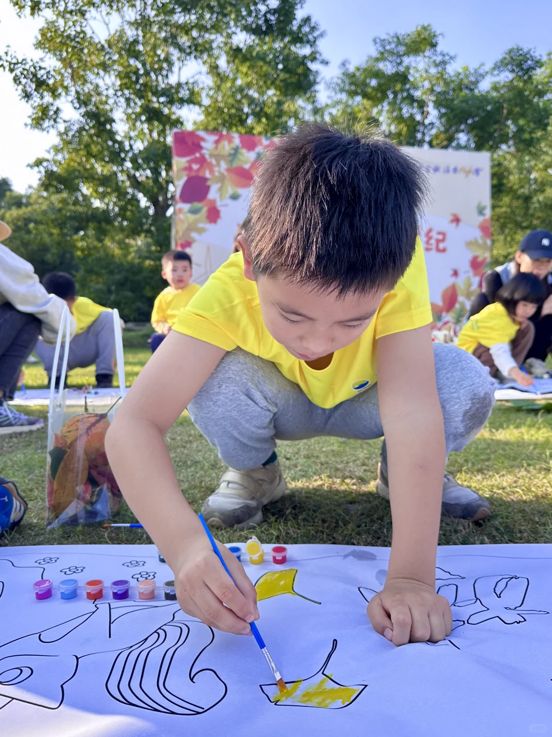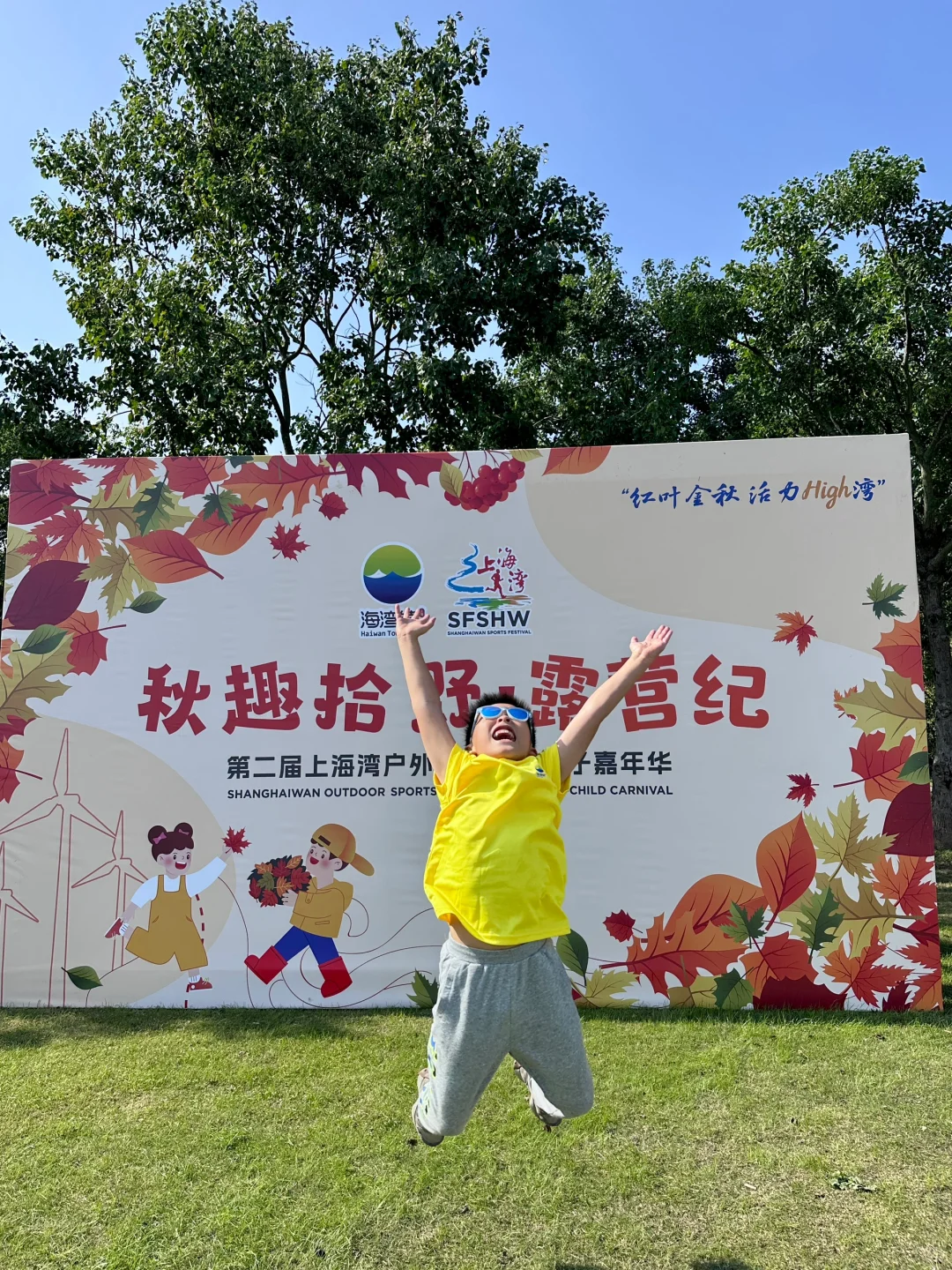 秋天,孩子们在奉贤海湾镇的森林公园里捡秋,绘秋,露营……第二届上海湾户外运动节开始啦
