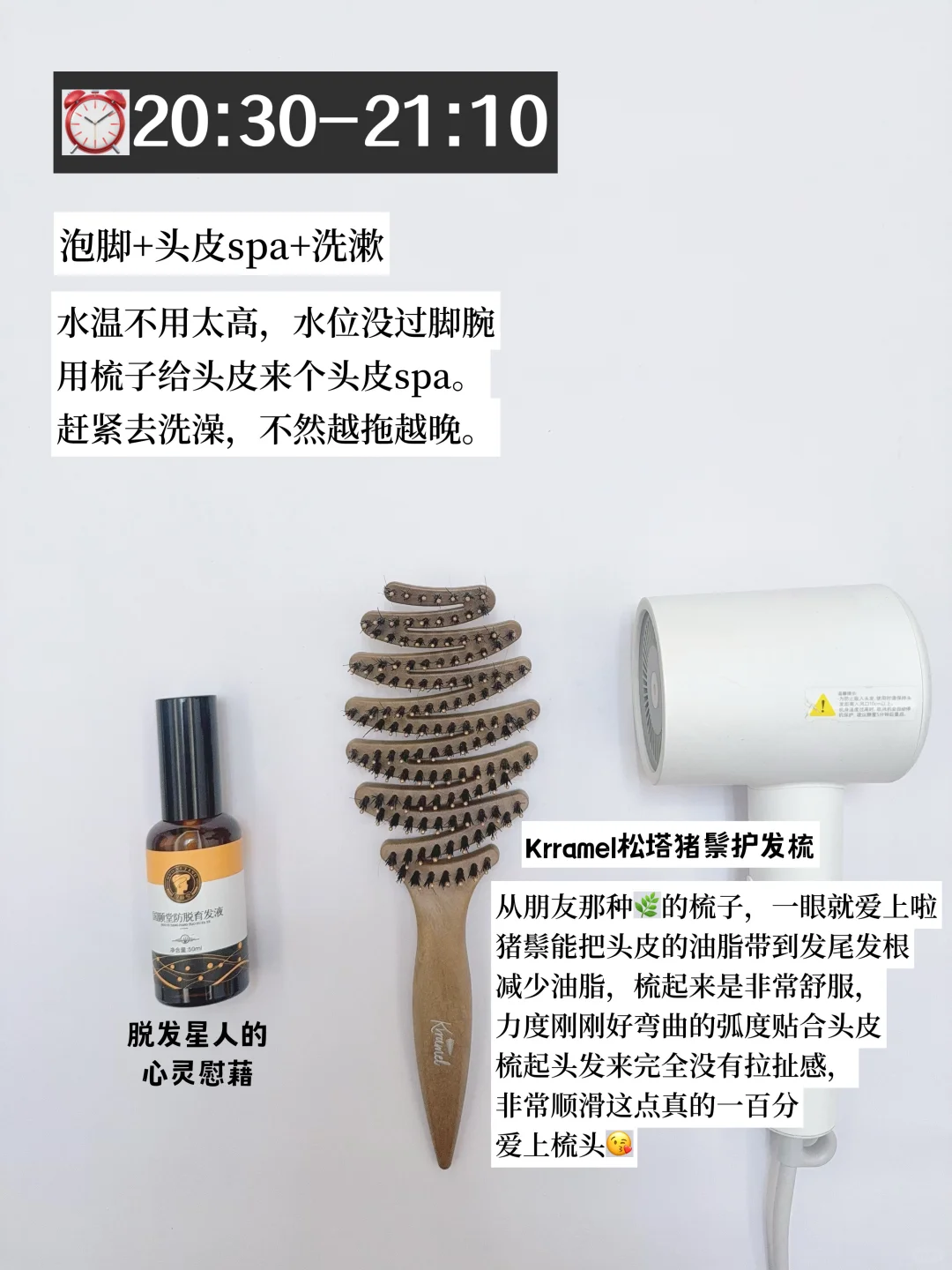⏰ 20:30-21:10 泡脚+头皮spa+洗漱
