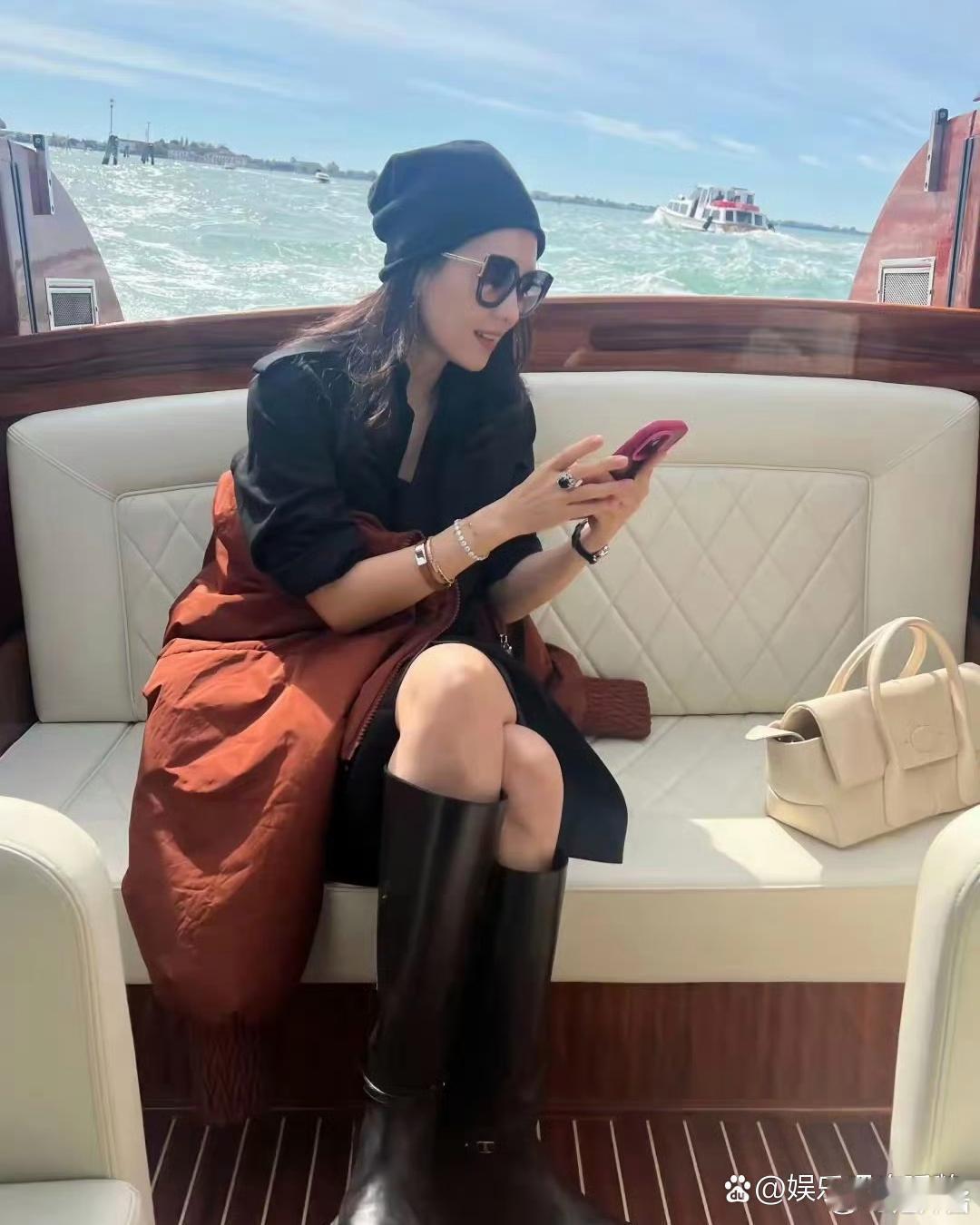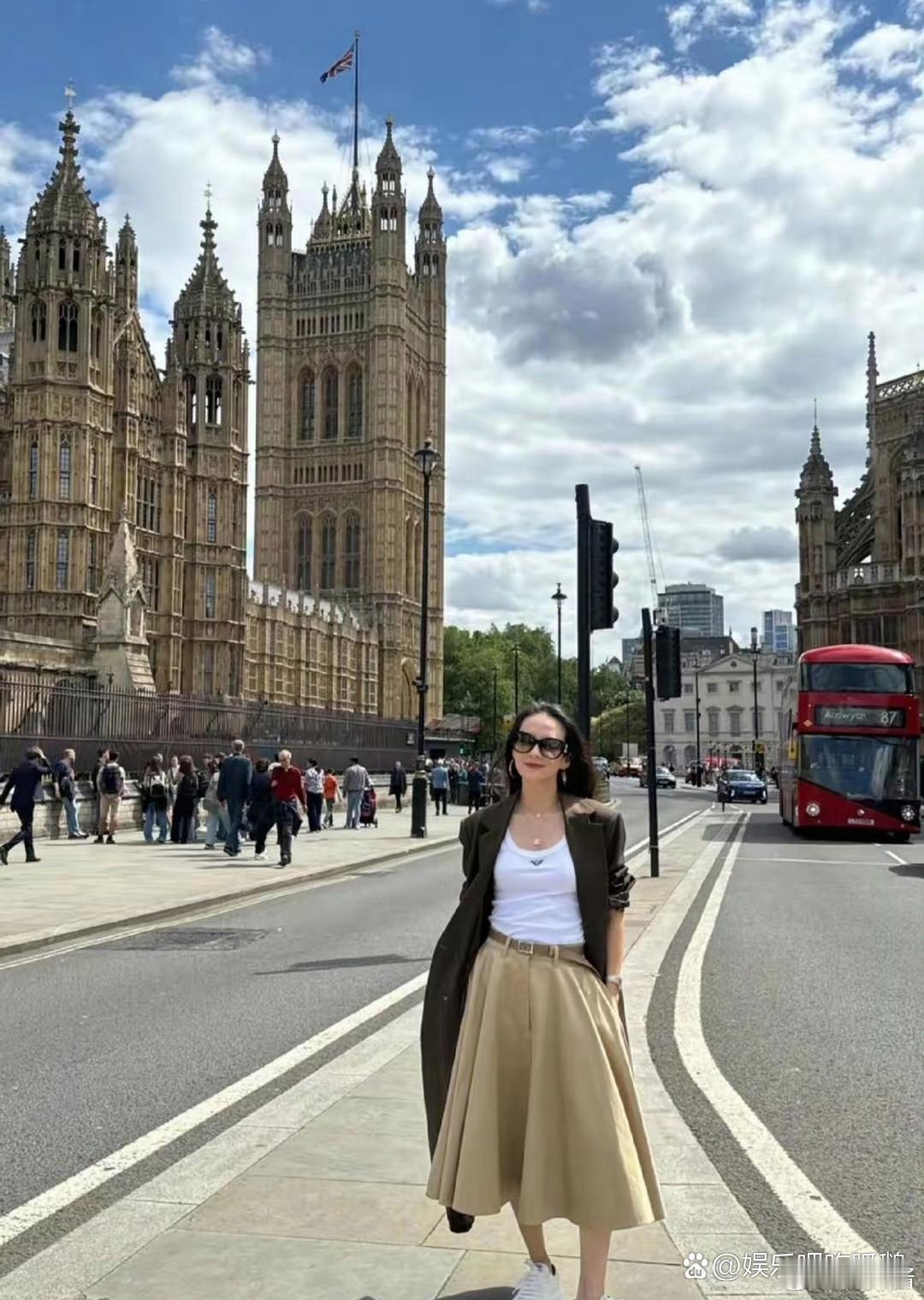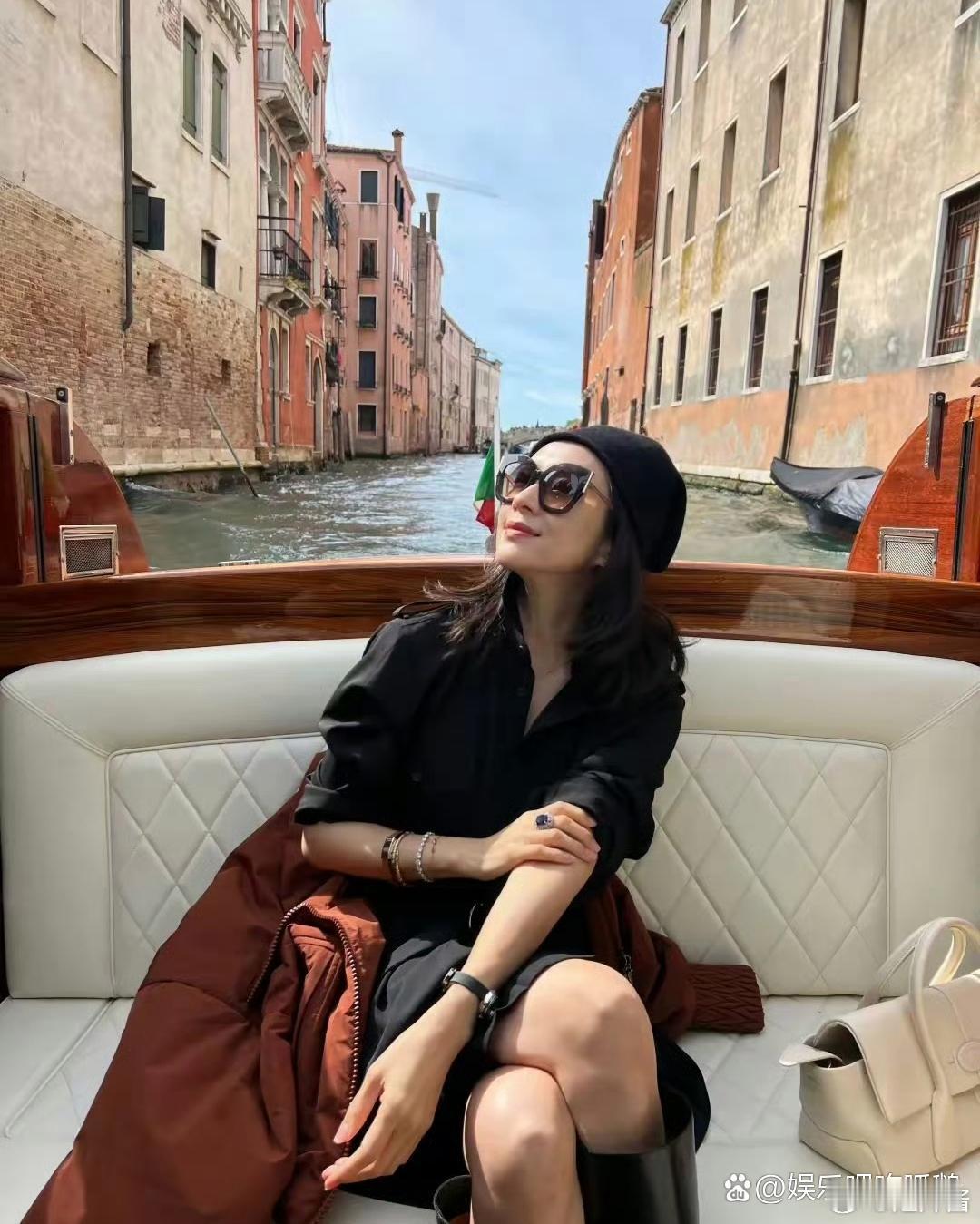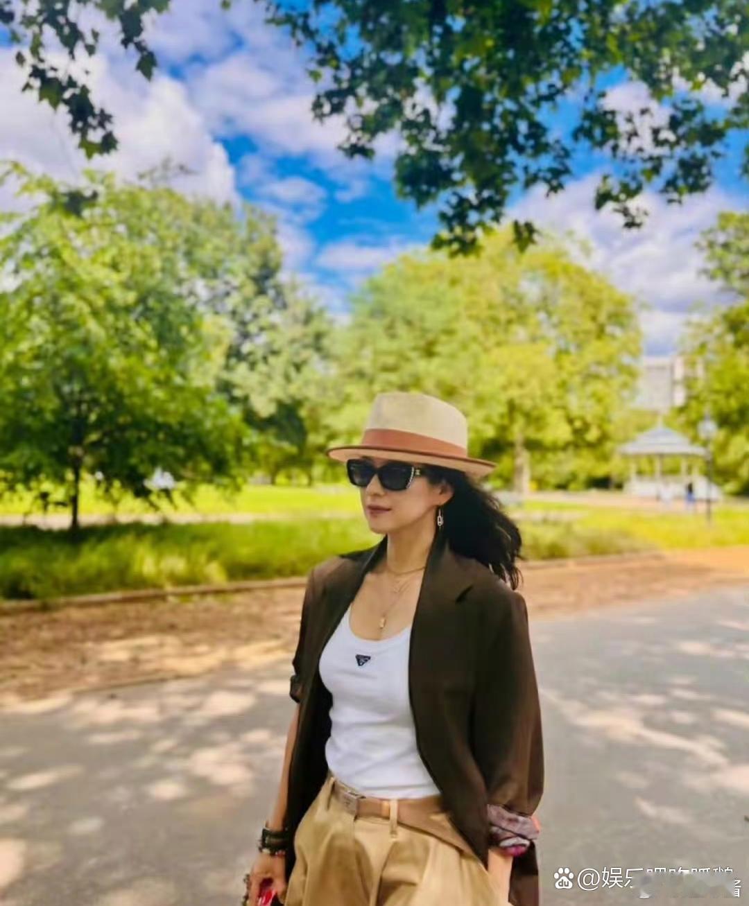 章子怡新换了卷发,竟然年轻 20 岁,在国外穿西装+半裙👀