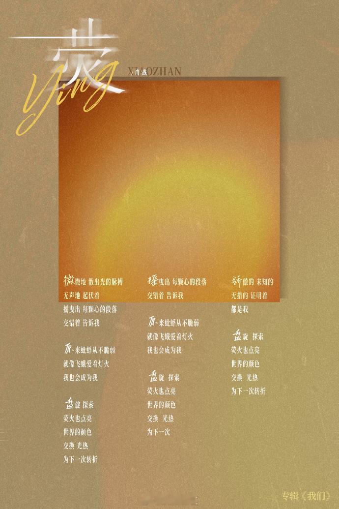 #肖战专辑我们歌词海报##肖战专辑我们第一波音源歌词海报# 肖战新专辑《我们》歌词海报华丽亮相,《我们》《都一样》《还原》《荧》歌词海报是音乐情感的载体,让我们迫不及待期待下一波。