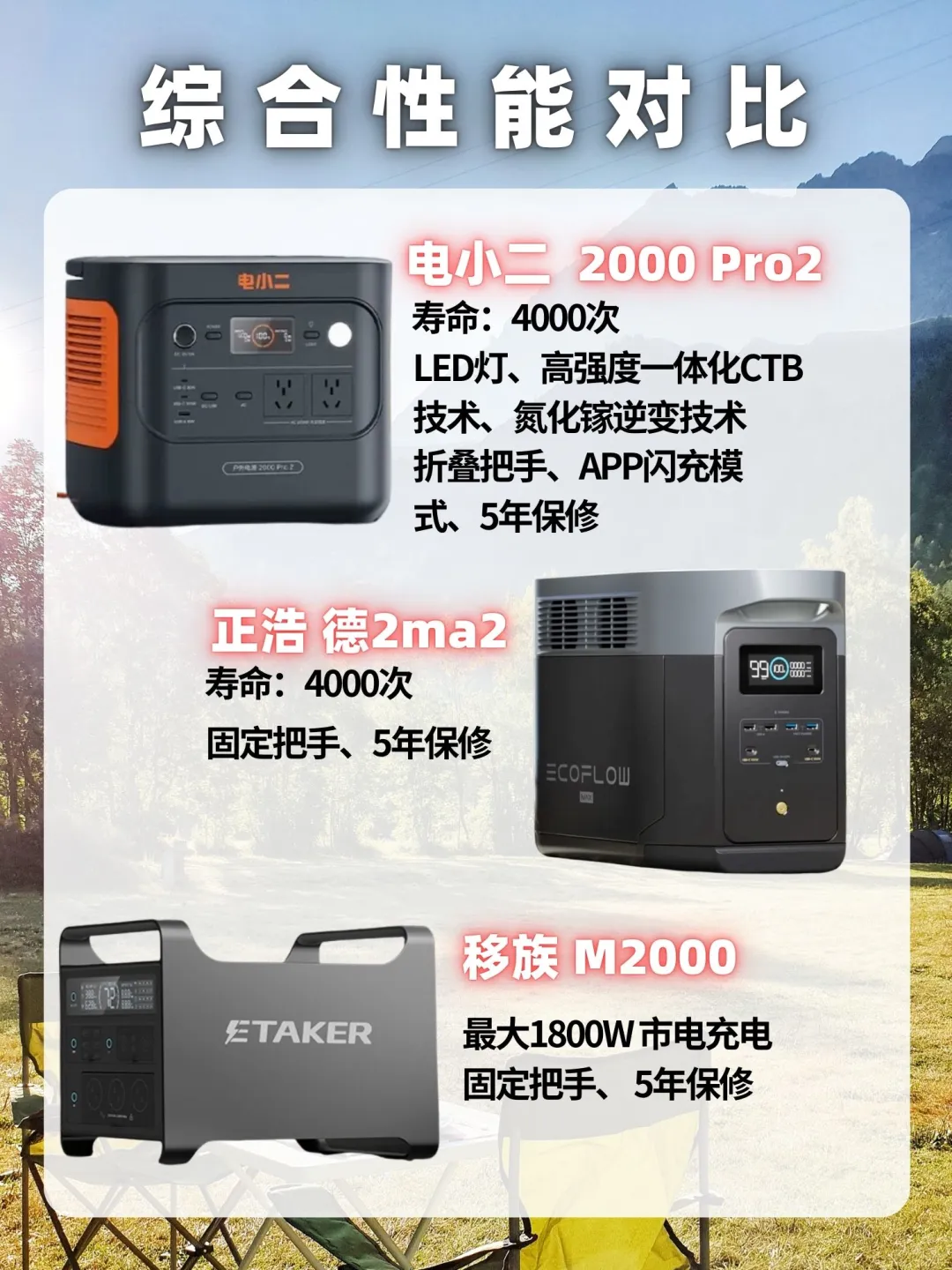 大家好,我是你们的老朋友军儿❗️ 军儿最近入手了一台户外电源!在露营的时候使用! 其实在购买那些产品上, 我做了很多功课❗️ 我最后选择了电小二2000Pro 2这款2度电的户外电源🔋 我今天就想把我做的功课分享给大家❗️ 我之前纠结的主要是三款产品,分别是电小二的2000Pro 2、正浩德的2max、移族的M2000 重点来说说电小二的优势:电小二是行业老品牌了产品力、产品质量没得说!采用的也是高品质安全的磷酸铁锂电池🔋 最后让我选择电小二,主要是四个原因吧❗️ 1.安全性:电小二采用的是全球Top3品牌的磷酸铁锂电芯,还通过了2度电的3C认证,安全性在我看来更有保障一些❗️ 2.性价比:电小二刚上市的时候比正浩便宜了足足500块钱,真的性价比杠杠的[爆炸R][爆炸R] 3.重量:电小二的重量比正浩的轻了11斤,还有可折叠便携式把手,很多电源都是固定式把手需要双手搬运很吃力[哇R][哇R] 三种市电独家AI变速充电:采用专研氮化镓逆变技术,最快0-80%只需要53分钟,还有静音模式选择[喝奶茶R][喝奶茶R][喝奶茶R]