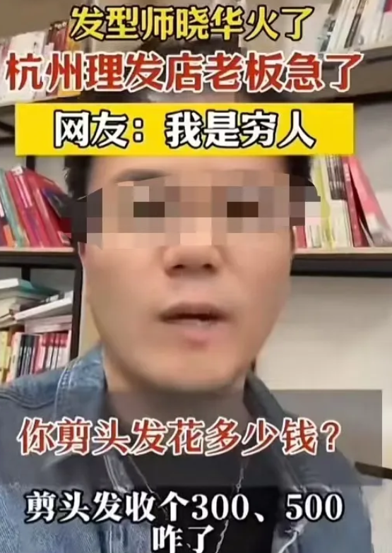 发型师晓华火了!杭州理发店老板急眼了,叫板说:“穷人就配找低端的,剪头发收你个三百五百咋了?我家狗理发还花三四百呢?”网友:一个小小的托尼还把人分三六九等,忘记他自己是哪个阶级!