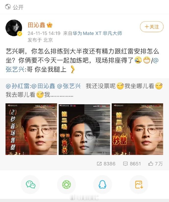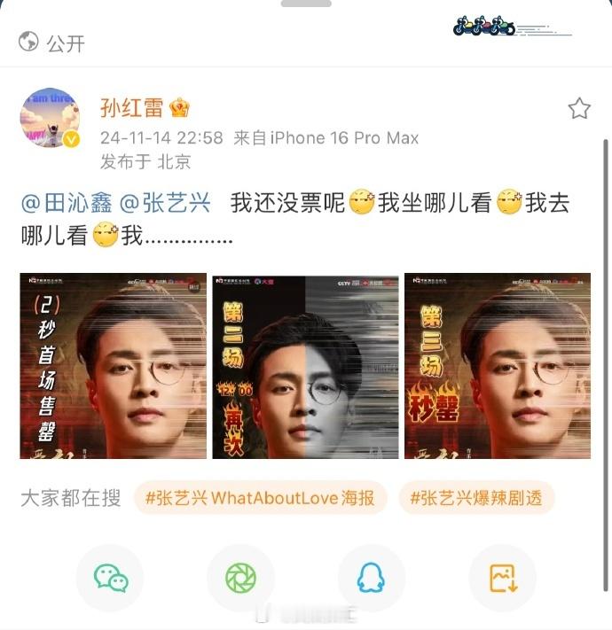 田沁鑫是张艺兴孙红雷cp粉头吧 田沁鑫是张艺兴孙红雷 cp 粉头吧!这不,孙红雷和张艺兴一互动,田沁鑫姐姐那速度,简直比闪电还快,瞬间就出现在嗑 cp 一线啦。这波操作,让我隔着老远都能感受到那种浓浓的 cp 氛围,仿佛自己也置身其中参与这场梦幻联动呢。