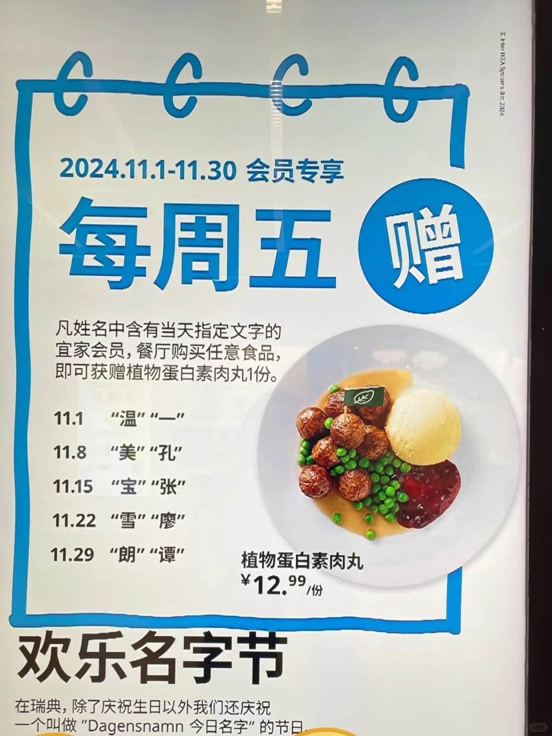 看图2 对应的姓名可以到宜家领取指定的美食! 来佛山宜家试了一下,果然可以✔️ 到宜家三楼餐厅区,排队到点餐取跟店员说 任意消费➕领取这一份,到结账取结账~
