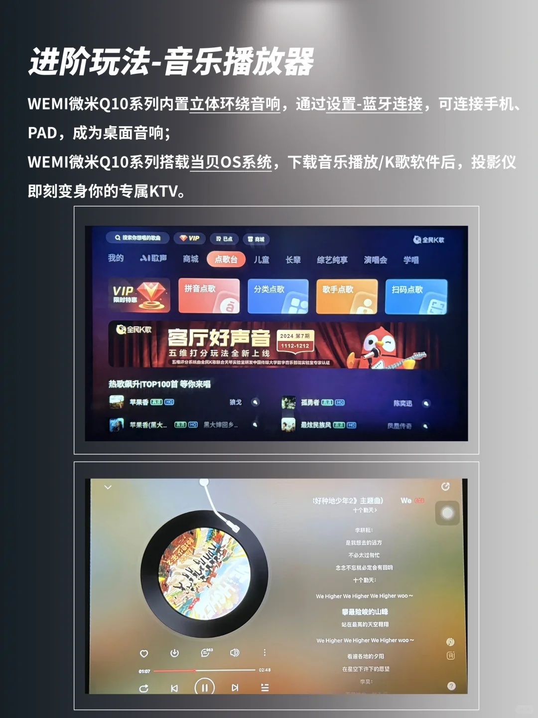 双十一入手了投影仪的家人们[哇R][哇R] 你还不知道投影仪怎么投屏?怎么设置吗?[赞R][赞R] 你还不知道投影仪有哪些隐藏玩法吗?[抠鼻R][抠鼻R] 今天robin就从投影仪的基础设置和进阶玩法,两方面给大家科普科普~[开箱R][开箱R][开箱R] 本次体验产品是来自WEMI微米的Q10系列 [拔草R][拔草R]900ANSI流明,画质高亮 [拔草R][拔草R]1080P分辨率,硬解4K,清晰度超顶 [拔草R][拔草R]2000:1对比,色彩还原更真实 [拔草R][拔草R]封闭式光机,不漏光不进灰 [拔草R][拔草R]安卓11+WIFI6,看剧、游戏不卡顿 ROBIN的感受是[派对R][派对R][派对R]不愧是千元价位内可盲入的性价比神机 趁着京东国补仍在继续,大家不妨下单体验感受一下~[自拍R][自拍R]