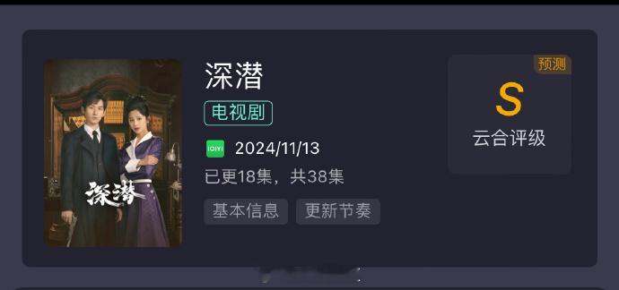深潜云合为S级 深潜B级播出S级效果 《深潜》云合评级已然确定,获得了S级评级呢,而且达成了B级播出S级效果的精彩呈现,开播后热度一路攀升,确实很有实力呀。