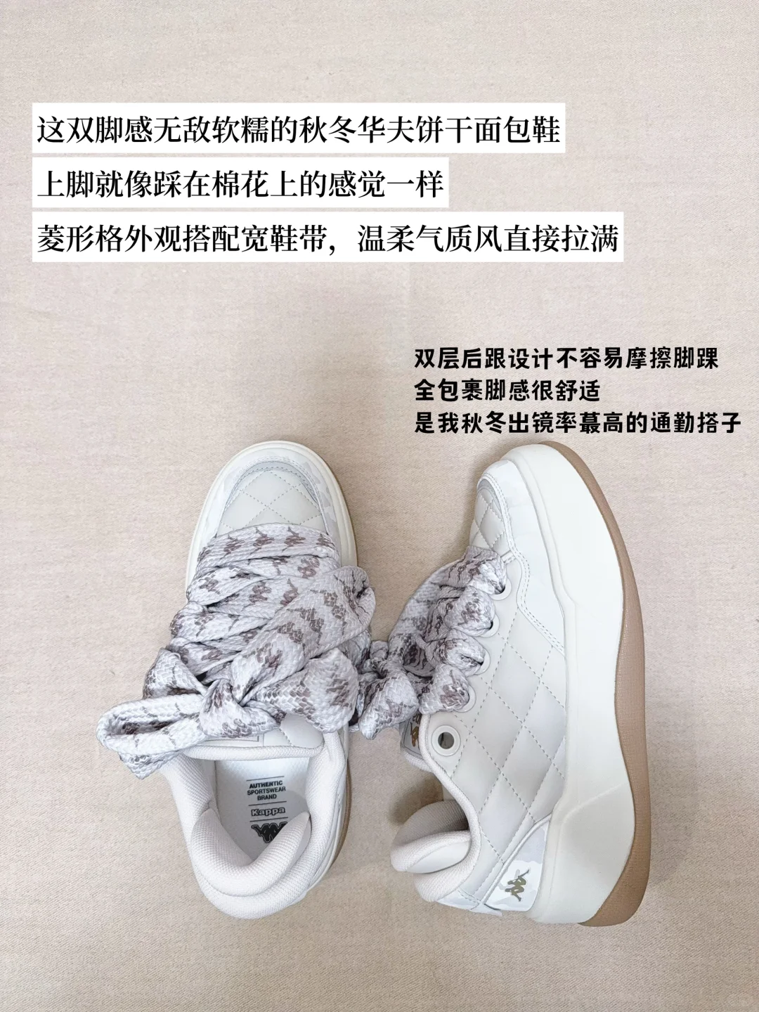 菱形格外观搭配宽鞋带,温柔气质风直接拉满