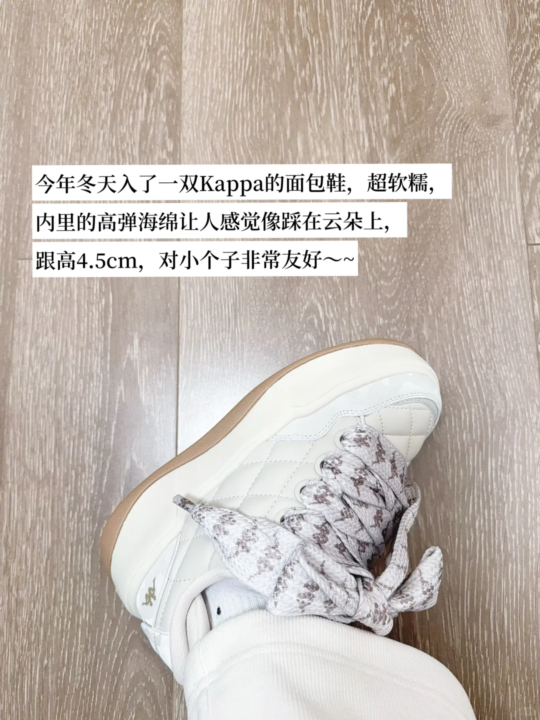 今年冬天入了一双Kappa的面包鞋,超软糕,内里的高弹海绵让人感觉像踩在云朵上,跟高4.5cm,对小个子非常友好[害羞R]~~
