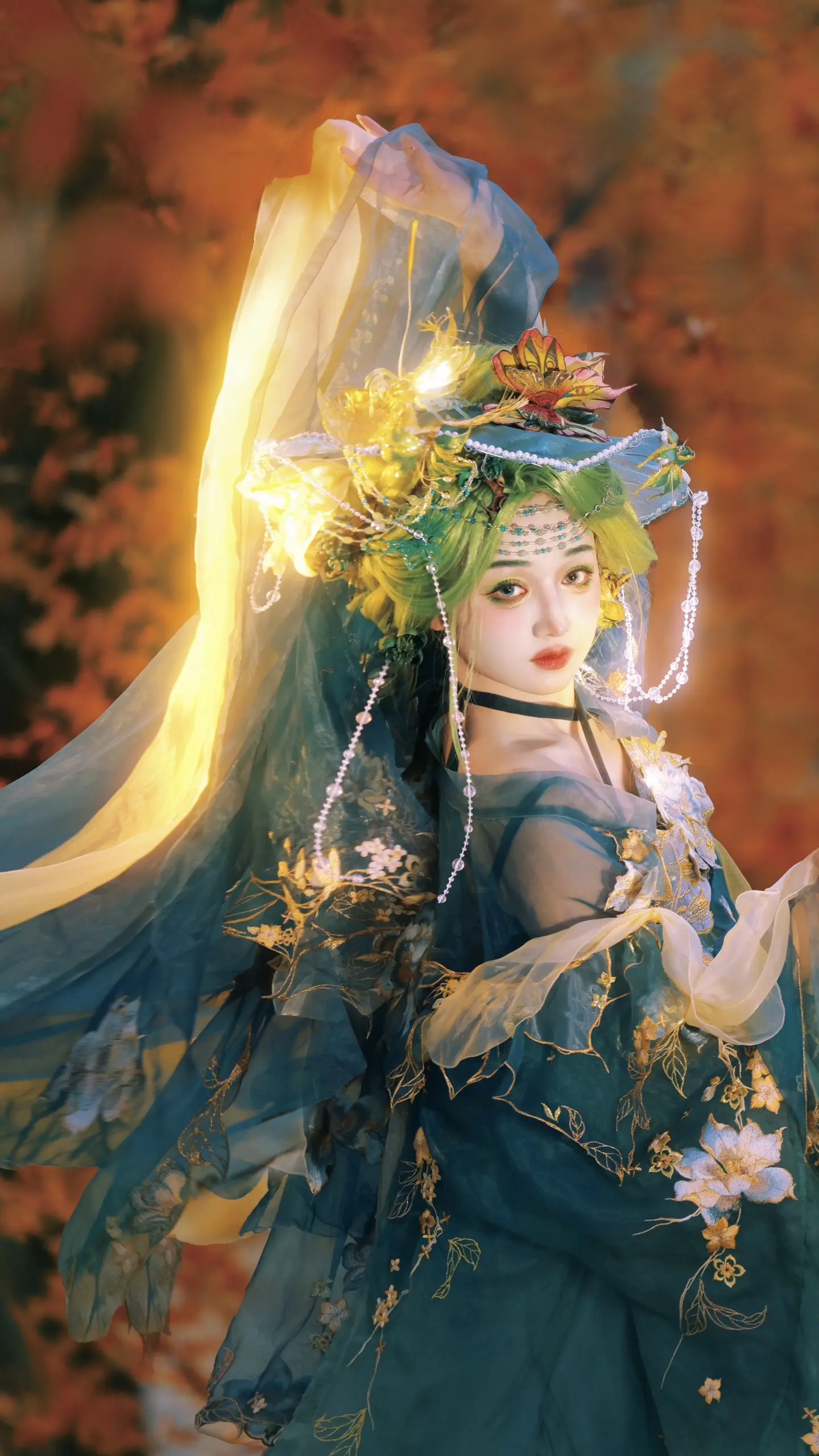 听闻红叶林中有只美丽的绿蝶🧚♀️…