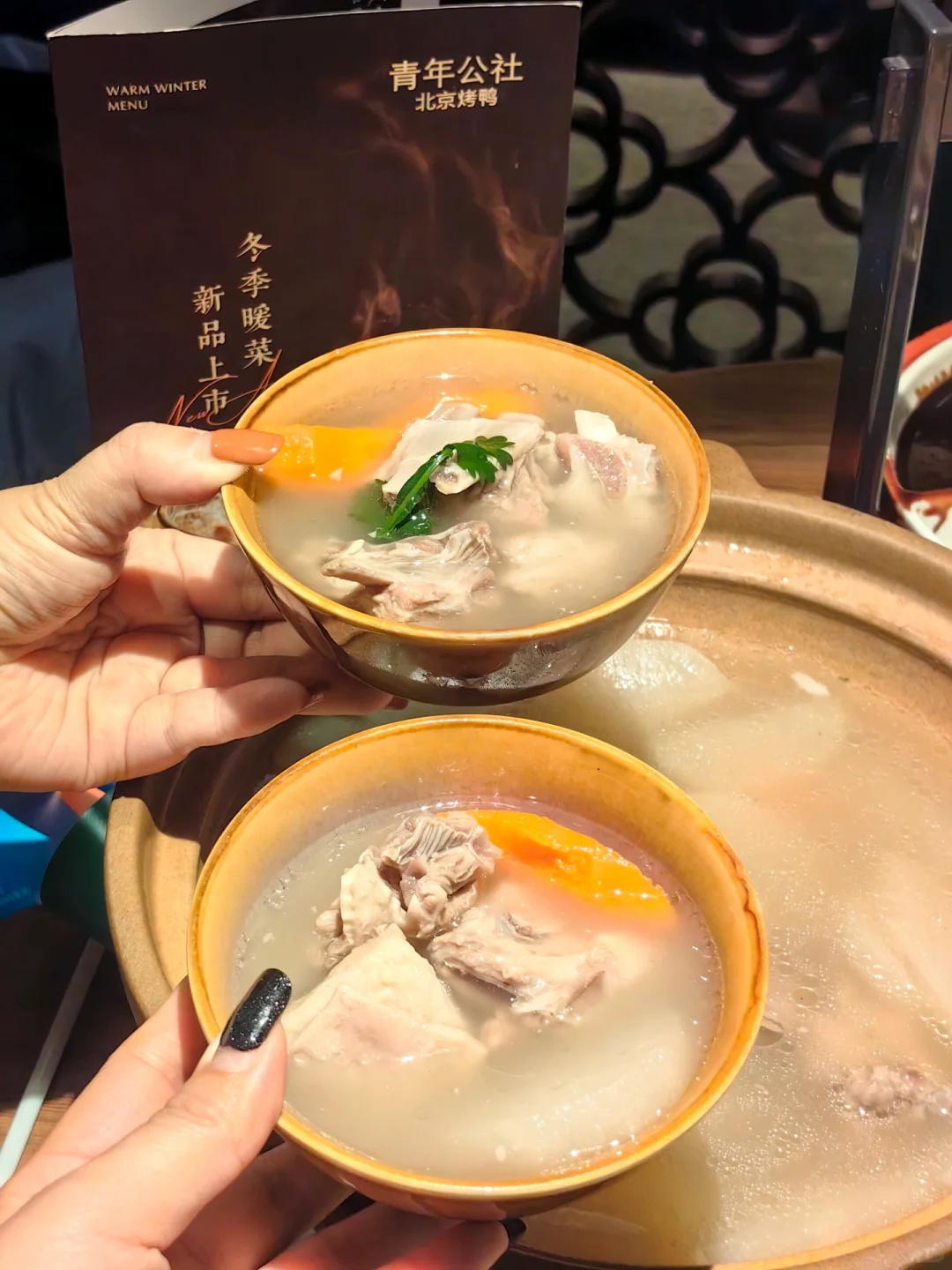 除了烤鸭,这个季节还很tui荐大家试试这里的羊肉炖萝卜🍲汤喝起来鲜美醇厚,萝卜入味又酥软;羊肉则是连皮带筋口感非常香嫩。这一锅可谓是老少皆宜!