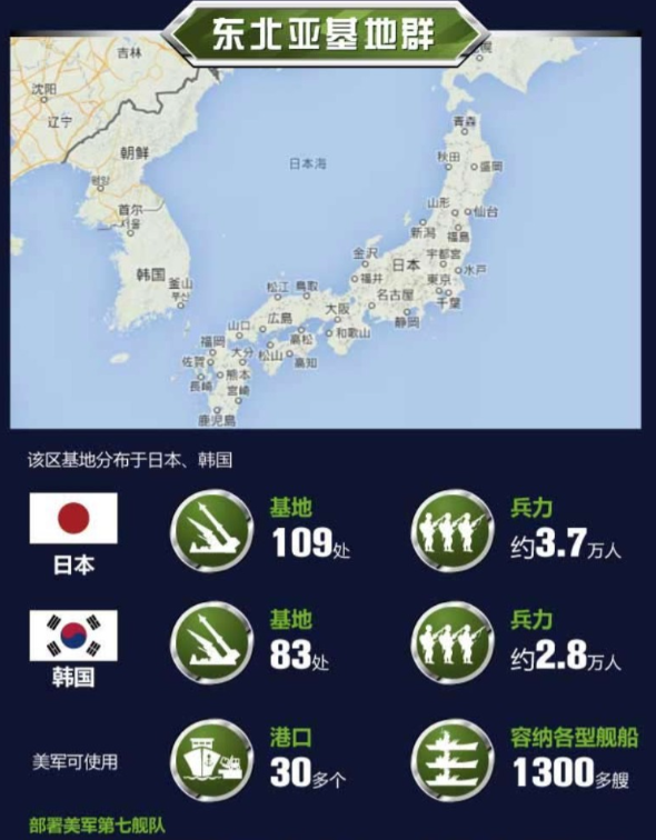 这次穿台湾海峡的P-8A反潜机,应该是美军在亚太部署的8个军事基地群中的一个——东北亚基地群! 美国为了维持海外霸权,在全球部署了598处军事基地,辐射了全球40个国家。其中,在亚太的海外基地数量仅次于欧洲,约占其总数的40%。 1、阿拉斯加基地群;2、东北亚基地群;3、东南亚基地群;4、印度洋基地群 5、关岛基地;6、澳洲基地群;7、夏威夷岛基地群;8、中亚基地群 一直以来,亚太地区都是美帝的战略重心,尤其是近年来东大飞速发展,美帝在我国周边一直屯重兵布防,用三条岛链遏制东大海军走向蓝海。 尤其是东北亚基地群,在韩国、日本部署基地192处,兵力6.5万,重点盯防我国黄海、东海方向。 他这次派遣反潜巡逻机,意图也是很明显。第一,例行“打卡”。对,就是打卡,他已经把侵扰我海防当成了上班。第二,为南海岛礁之争壮声势。包括前几天报道出来的“仁爱礁特遣队”,都是在秀肌肉。第三,美军航母“华盛顿”号前天移防日本横须贺港,东大的街溜子815电子侦察船全程围观,让他很没面子,这是来找场子来了。 这家伙也是常客了,以往的做法就是驱赶,但时间长了他都麻木了,最好和对付澳大利亚P8一样,直接抛铝箔条!