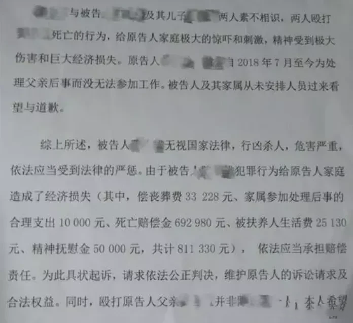 加之邵某也说了自己心脏不舒服,所以姜林在能够预见到自己的行为,会诱发邵某突发心脏疾病、加重呼吸不畅的严重后果,仍旧压在邵某身上,漠视邵某的生命安全,并最终导致邵某死亡。 则姜林符合过失致人死亡罪的犯罪构成,应当承担刑事责任,同时还要附带民事赔偿。 接着,律师详细地列出了赔偿丧葬费、死亡赔偿金、被抚养人生活费及家属的精神抚慰金共计81万余元。
