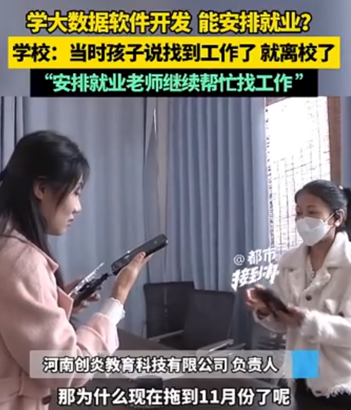 4万学费,包分配,月薪9000?11月16日,河南郑州。胡女士为了儿子花4万送他去学大数据开发,10个月后,儿子毕业半年工作依旧没着落!说好的“包分配”呢?学校负责人却称:9月底联系过,孩子说自己找到工作了呀?!