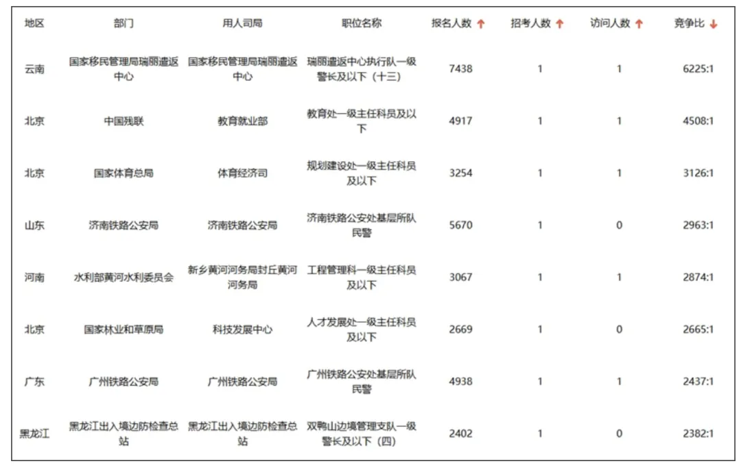 热门岗位报录比突破 1000:1,部分省直单位甚至出现 “硕博扎堆抢本科岗”;