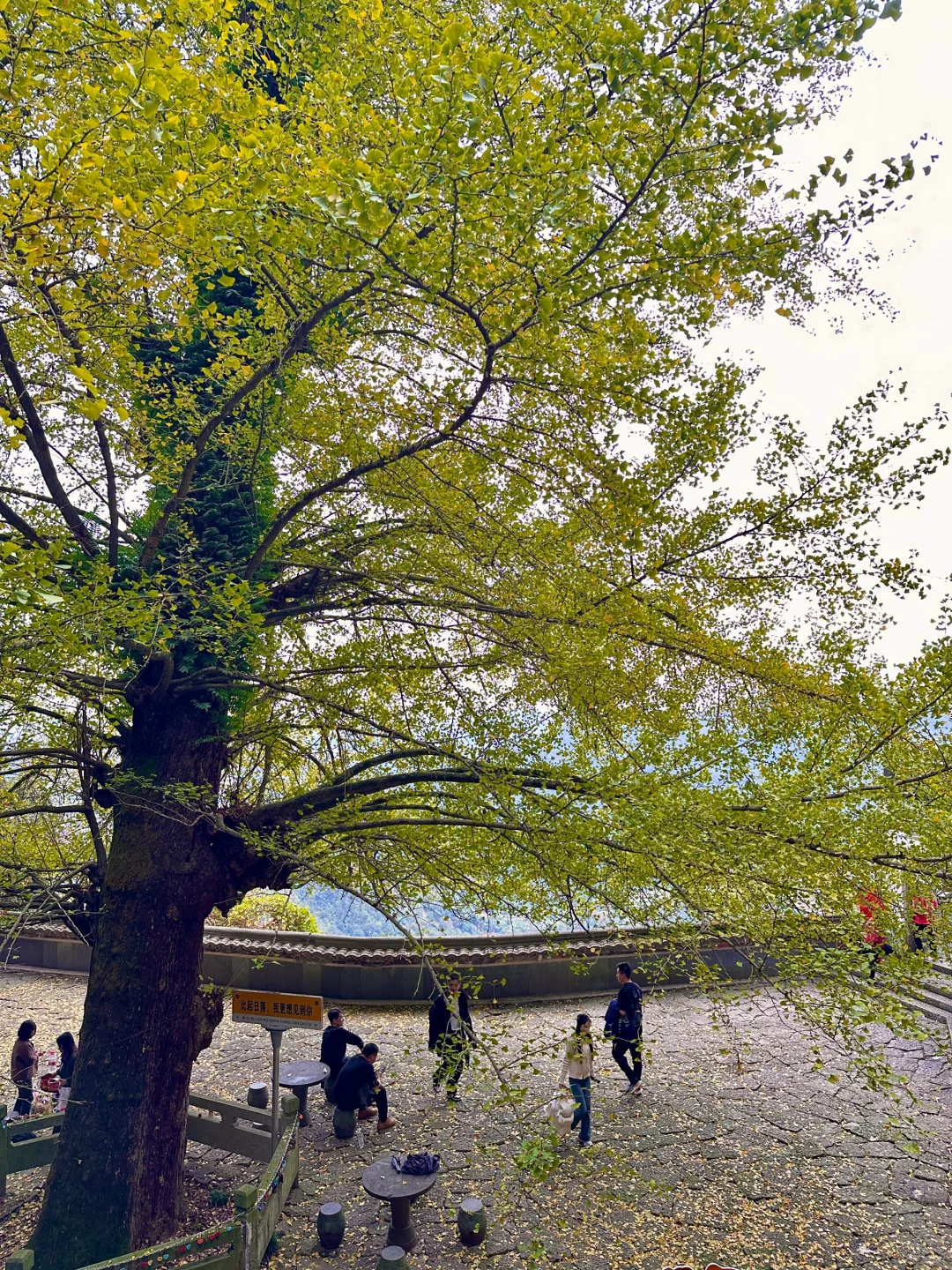 伫立在大慈岩的山间,微风拂过枝头,金叶洒落,感受金色银杏雨的浪漫,这一刻,空气中弥漫着秋天特有的清新气息;好适合穿汉服拍照,氛围感绝了。这样的秋日,简直让人心醉神迷。