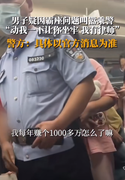 "我有钱!就任性!"2023年,一男子高铁霸座,乘警让他让出座位,不料男子态度嚣张地说道:“我一年赚1000多万,你敢动我一下试试,我马上打110让你坐牢!” (参考资料:河北青年报) 男子说话间,周围的乘客都围了过来,不可思议地看着眼前这一幕。 有人笑着看着男子,仿佛在看一个行为怪诞的小丑;更有人拿出手机录像,似乎在等待着接下来上演的好戏。 “我一年赚1000万、2000万,我有私人律师,你动我,我花十万八万,让你吃不了兜着走。”男子张牙舞爪地在乘警面前比划着,期间还不停地佯装拍桌子,显得自己不是一个好惹的人。 而乘警看到这一幕后,又将伸出的手缩了回去,静静地站在原地看着男子。 听男子这么说后,一旁的几个小朋友笑得更灿烂了。 其实明眼人都看得出来,男子的话显然是唬人的,毕竟一年都赚2000万了,不应该有一架私人飞机吗?或者坐商务座也行呀。坐快车,还要抢其他人的座位,是不是有点太掉身价了。 但不管怎么说,男子在气势上已经占据了上风,一旁的乘警脱下帽子,缓慢地抹了一把额头上的汗水,然后又戴了回去。 “我做家电的怎么了,我客户多的是。我有的是钱,你最好想清楚后果。”男子继续有鼻子有眼地说道。 只能说这位男子实在太狂妄且无知了,就算他有钱,就能让乘警坐牢吗? 乘警的职责就是维护列车上的公共秩序和旅客的安全,而男子霸占他人座位的行为已经扰乱了列车的正常秩序,违反了社会公德和列车的相关规定,乘警要求男子让出座位是依法履行职责的行为。 当乘警在履行正常职责过程中,只要没有使用超出必要限度的暴力等违法手段,就不存在违法的情况。 而在这个过程中,乘警一直保持得很克制,并没有对男子采取过激行为,只要采取合理合法的措施,即便乘警强制将男子带离座位,男子也不能让乘警坐牢。 法治社会,法律面前,人人平等,就算你再有钱,只要违反了法律,也要受到法律的制裁;反之,就算你再有钱,只要别人不违法,你也不能把别人怎样。 但考虑到男子行为过于嚣张,可能精神存在问题,再加上车厢里人群密集,乘警并没有将男子强制带离。直到男子坐到了下一站后,他才被警方带到了当地派出所进行详细调查。 事后调查显示,男子买的是K字开头的无座列车七车厢,男子上车后便随便找了一个空位坐下来,当列车到达下一站后,一位上车的乘客发现男子坐了他的座位,就出示自己的车票,希望他能让开。 男子拒不让座,还对这位乘客各种恐吓,表示自己身份不一般,千万别惹自己,而且惹自己,自己也不让座,看他能拿自己怎么办。 这位乘客也是当仁不让,于是两人便吵了起来,争吵的声音很快吸引了乘警的注意,这才发生了后面的事。 后来,男子因构成扰乱公共交通秩序,而被进行行政拘留处罚。 只能说,天狂有灾,人狂有祸,男子最终为自己的行为付出了惨痛的代价。