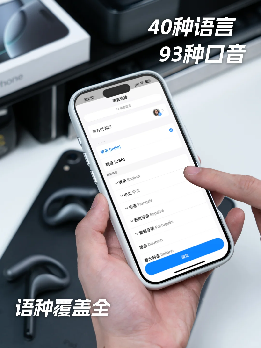 在家看外语内容的时候,可以用它同声传译。不仅能实时生成双语字幕,还能在耳机里朗读译文,翻译的内容也会保留下来方便查看。跟外国人打电话可以用它翻译,同样能同声传译,保留记录,AI总结。