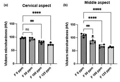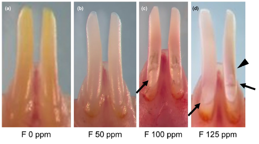 牙本质显微硬度测试结果也不容乐观,氟化物浓度升高时,牙颈部和牙中部的显微硬度均显著降低,这使得牙齿在面对日常咀嚼等机械应力时更加脆弱,容易受损。