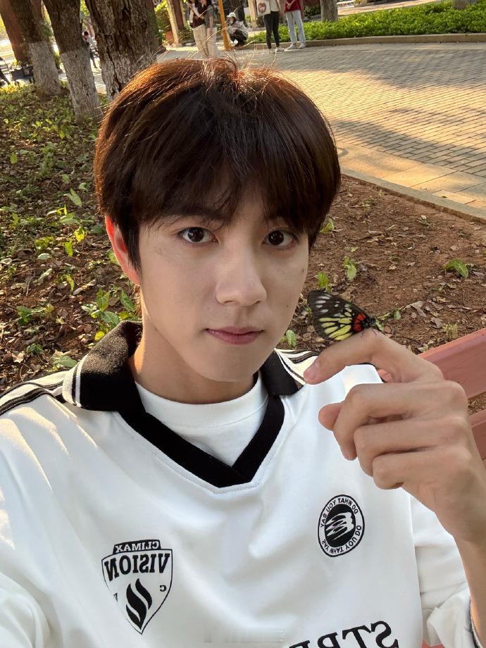 赵一博遇到了一只报喜斑粉蝶 赵一博希望它的出现能继续给我们带来好运 赵一博在