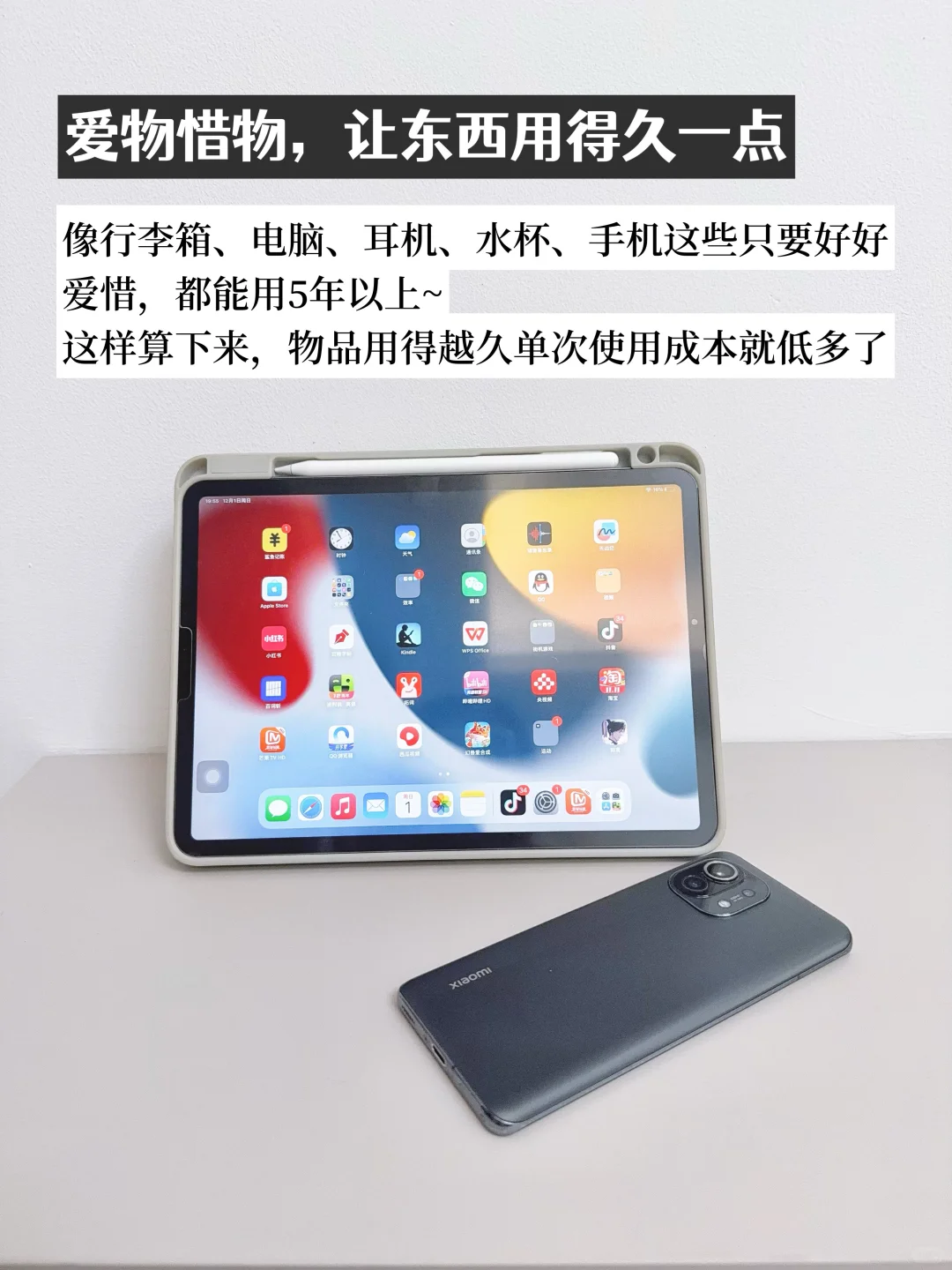 像行李箱、电脑、耳机、水杯、手机这些只要好好爱惜,都能用5年以上~这样算下来,物品用得越久单次使用成本就低多了。
