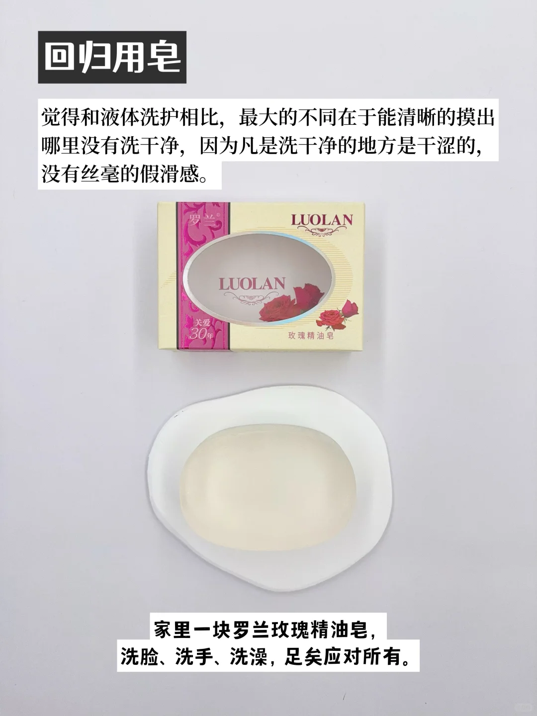 家里一块罗兰玫瑰精油皂,洗脸、洗手、洗澡,足矣应对所有。