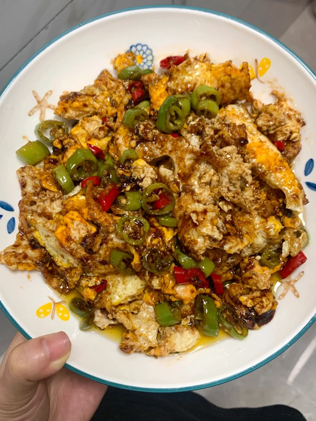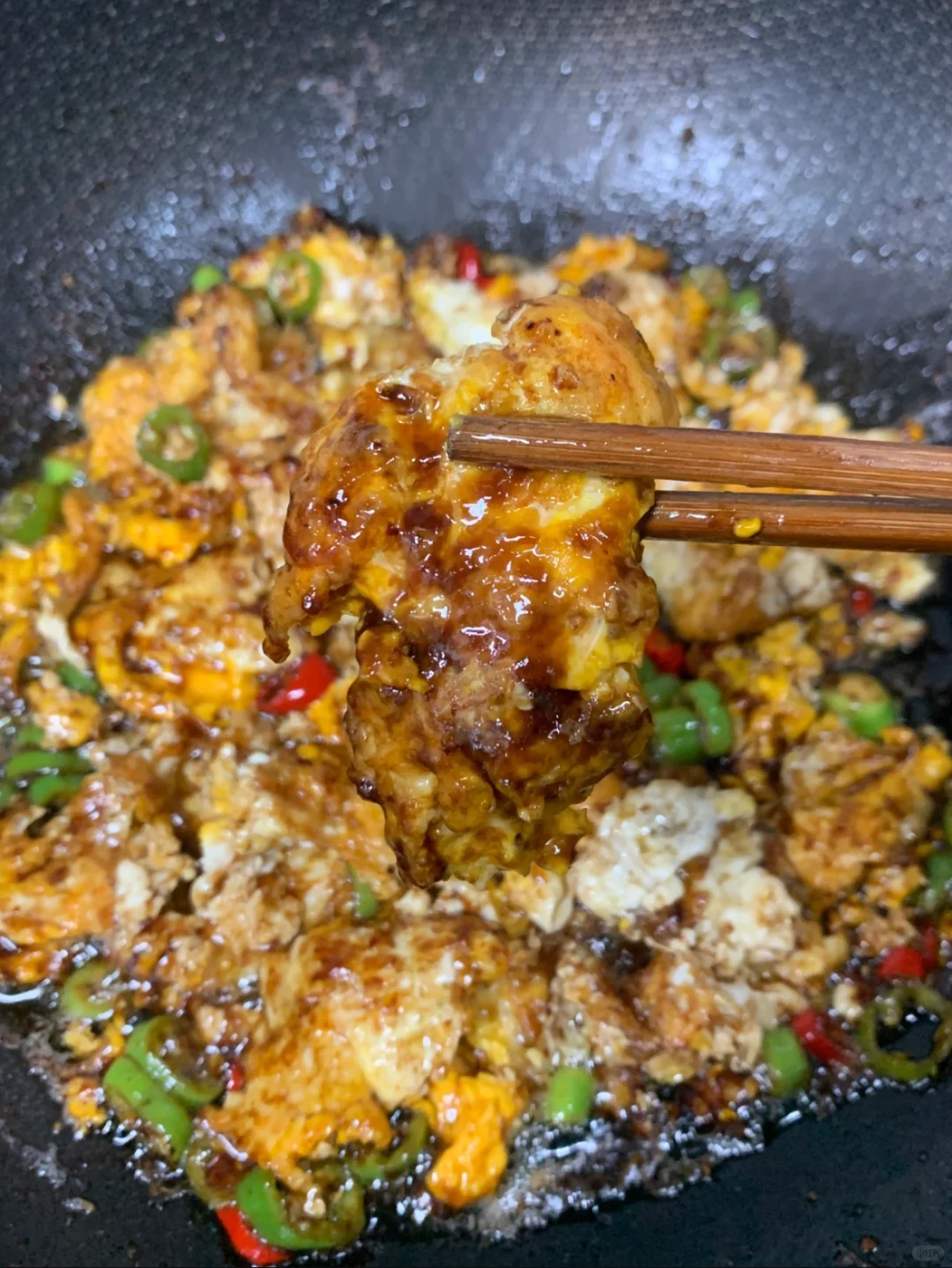[星R][星R][星R]啊啊啊谁懂这道醋炒蛋的含金量!!又简单又好吃,[害羞R][害羞R]超级无敌下饭,一道菜可以干两碗饭!醋香味十足~ 食材:鸡蛋、青椒、小米辣 料汁:4勺醋、2勺生抽、1勺蚝油、1勺淀粉,搅拌均匀备用 做法: 1⃣️打入6个鸡蛋,小米辣切成小段 2⃣️锅中多倒一些油,油热倒入鸡蛋,煎至两面定型,淋入料汁,十五秒关火即可