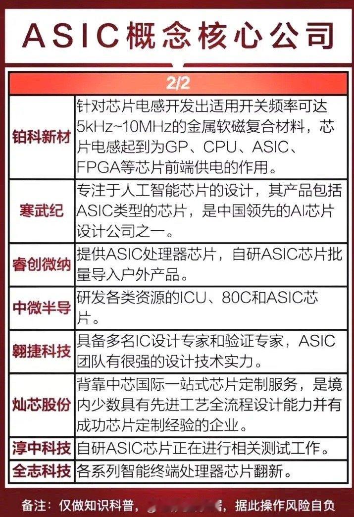 ASIC(定制人工智能芯片)概念核心公司梳理:以下图表介绍的股票不构成投资建议,