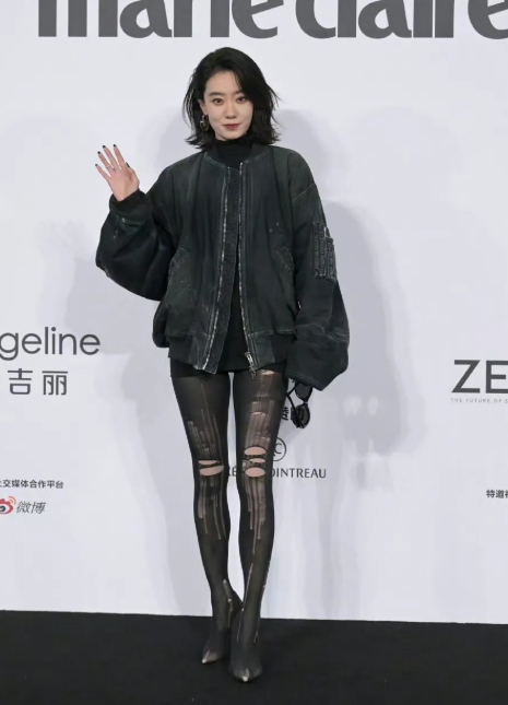 家人们,张小斐这次穿搭可太 “炸裂” 了!一现身,全场傻眼,下半身就套了条破洞黑丝袜,那些撕痕、破洞,也不知是丝袜本来就长这样,还是特意弄的。还把丝袜穿在高跟鞋外头,谁看了不得寻思寻思啊!不过离谱归离谱,配上宽松牛仔夹克、朋克墨镜,嘿,又意外时髦,又酷又飒,个性得很,真绝了!